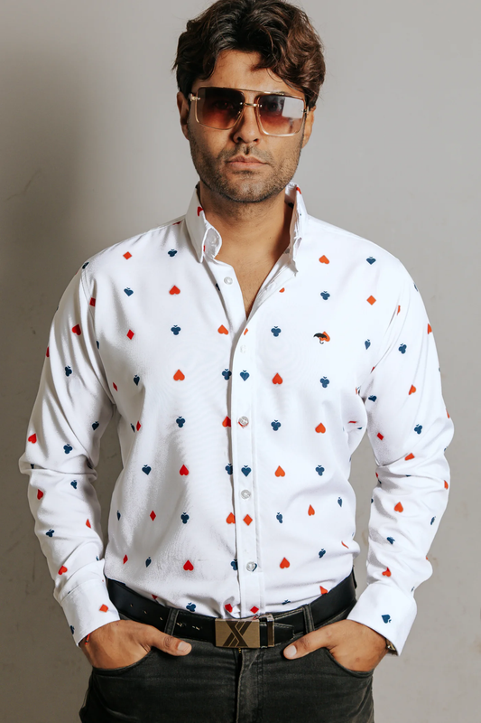 CAMISA HOMBRE SLIM FIT, BLANCA PICAS TRÉBOL CORAZONES