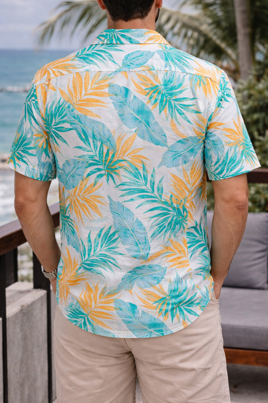Camisa Hombre Casual Blanca Hojas Colores