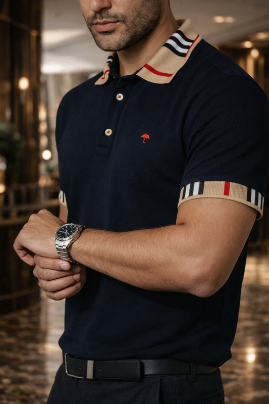 Playera Polo Hombre Slim Fit Azul Marino Detalle Beige