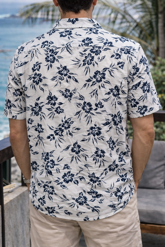 Camisa Hombre Casual Blanca Rosas