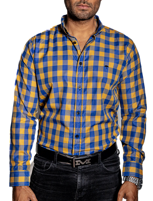CAMISA HOMBRE CASUAL CUADROS AZUL, OROPrecio habitual $ 349.00 MXNPrecio habitualPrecio unitario / por$ 599.00 MXNPrecio de oferta $ 349.00 MXNOferta