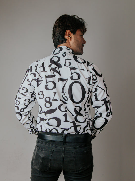 CAMISA HOMBRE SLIM FIT, BLANCA CON NUMEROS AZULES
