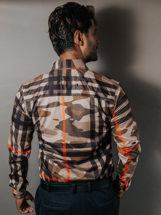 CAMISA HOMBRE SLIM FIT CAMUFLAJE LÍNEA NARANJA