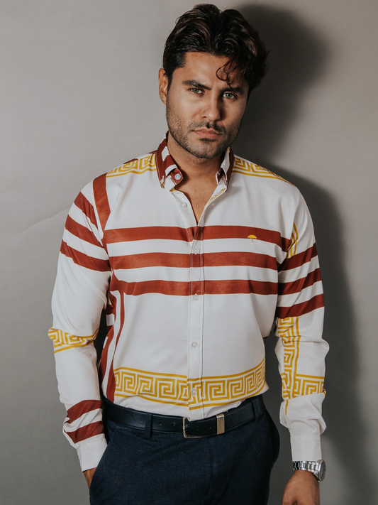 CAMISA HOMBRE SLIM FIT MARFIL DETALLE GRIEGO DORADO