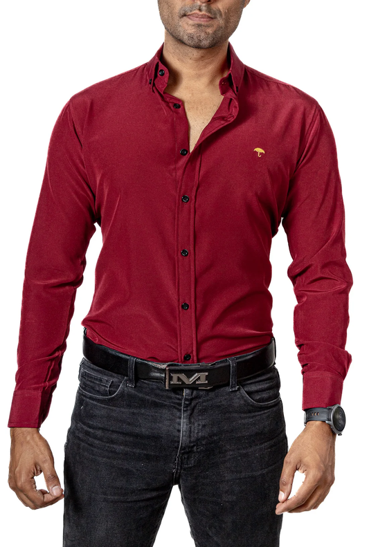 CAMISA HOMBRE CASUAL ROJA OSCURA LISA