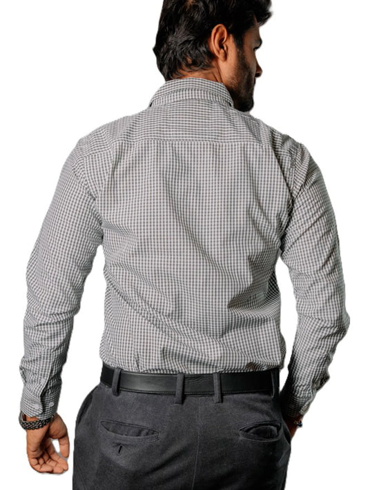 Camisa Hombre Casual Mini Cuadros Blancos Verdes