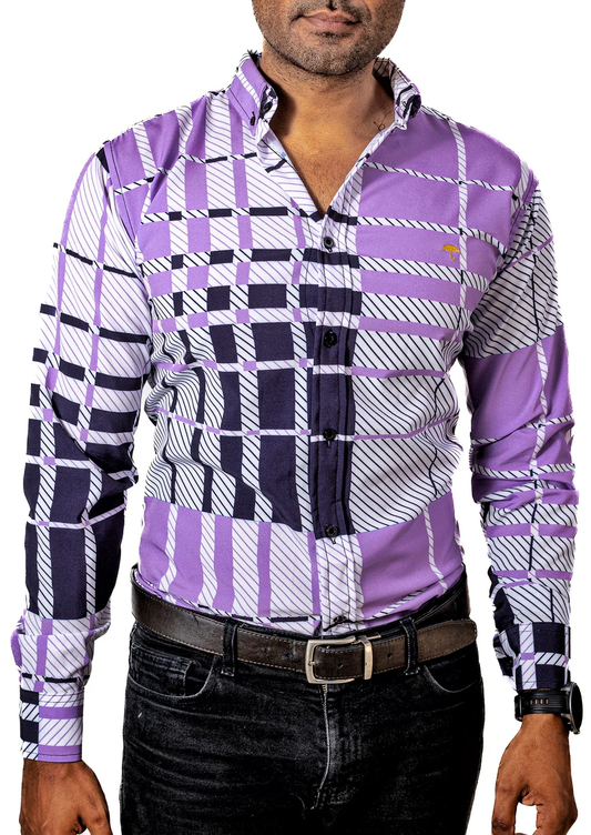 CAMISA HOMBRE CASUAL CUADROS MORADOS, BLANCOS, NEGROS