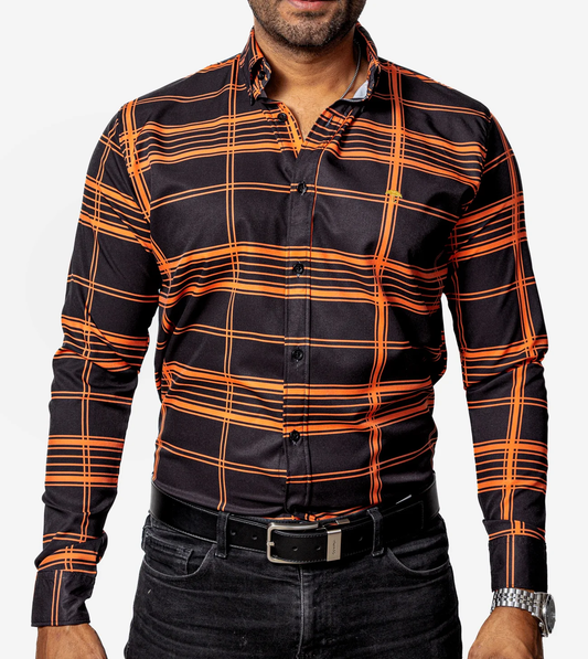 CAMISA HOMBRE CASUAL CUADROS NARANJAS, BLANCOS, NEGROS