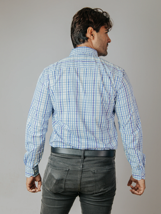 CAMISA HOMBRE CASUAL CUADRO AZUL MARINO AZUL CIELO AZUL GRISÁCEO