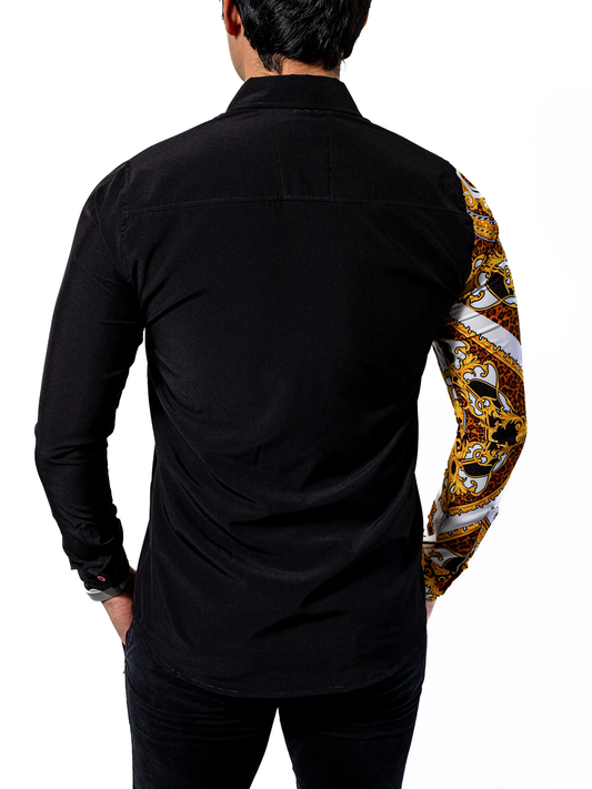 CAMISA HOMBRE SLIM FIT FIGURAS BARROCO DORADAS NEGRA