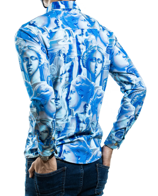 CAMISA HOMBRE ESTATUA RENACENTISTA AZUL SLIM FIT
