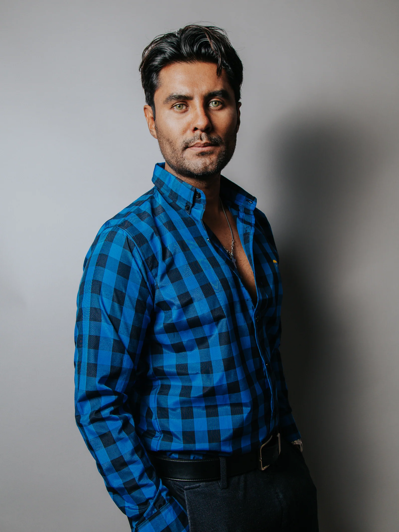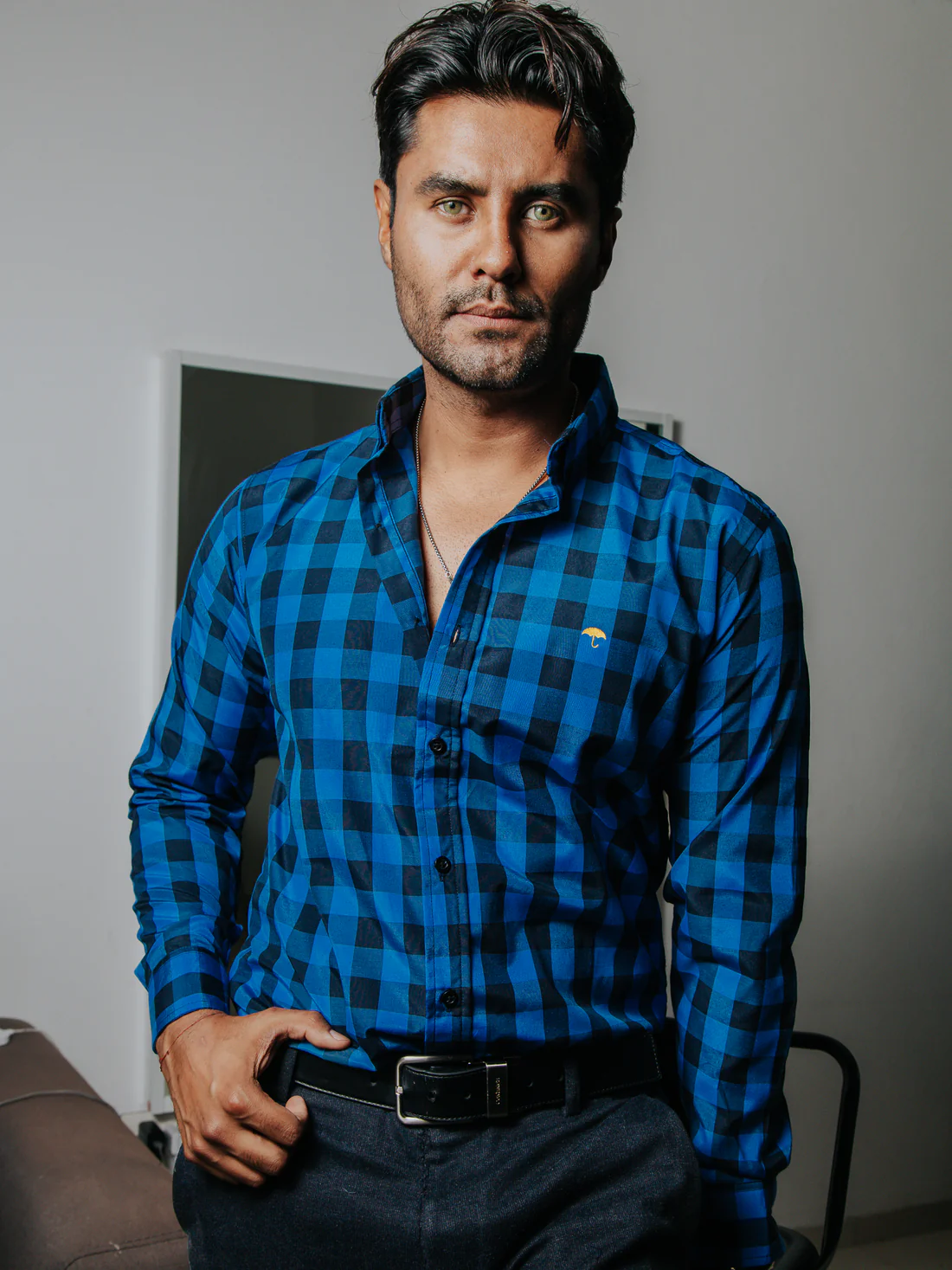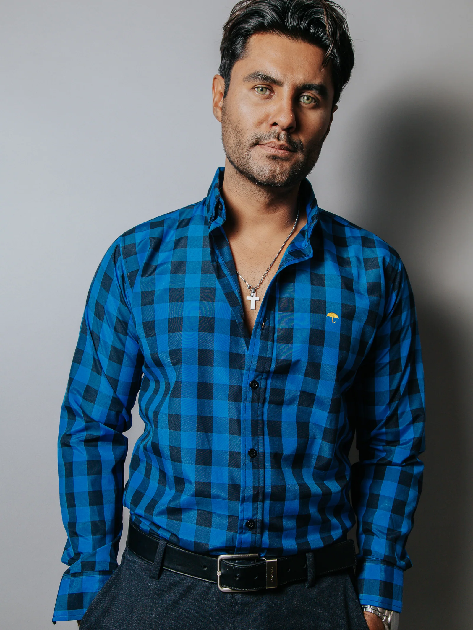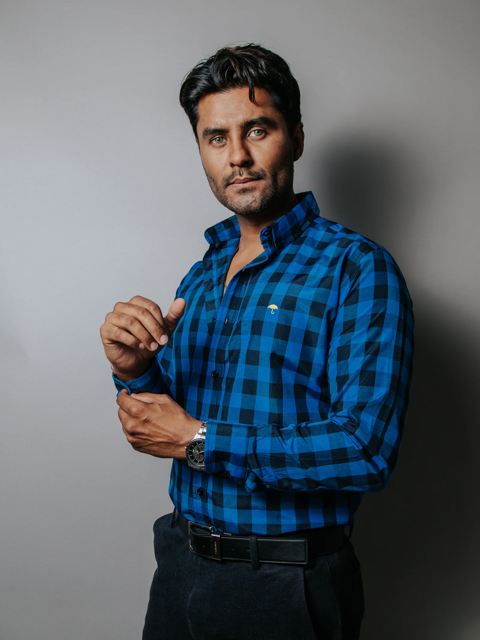 CAMISA SLIM FIT HOMBRE AZUL MARINO CUADROS NEGRO