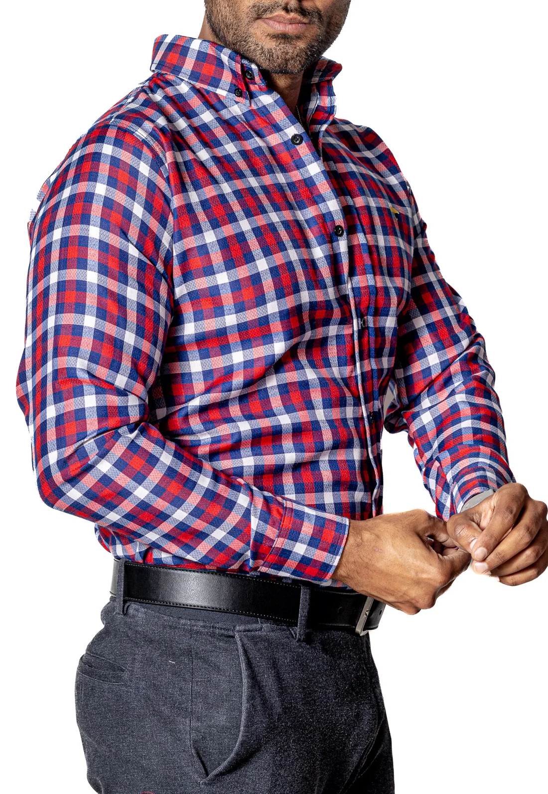 CAMISA CASUAL HOMBRE, CUADRO AZUL MARINO, ROJO, BLANCO TEXTURA