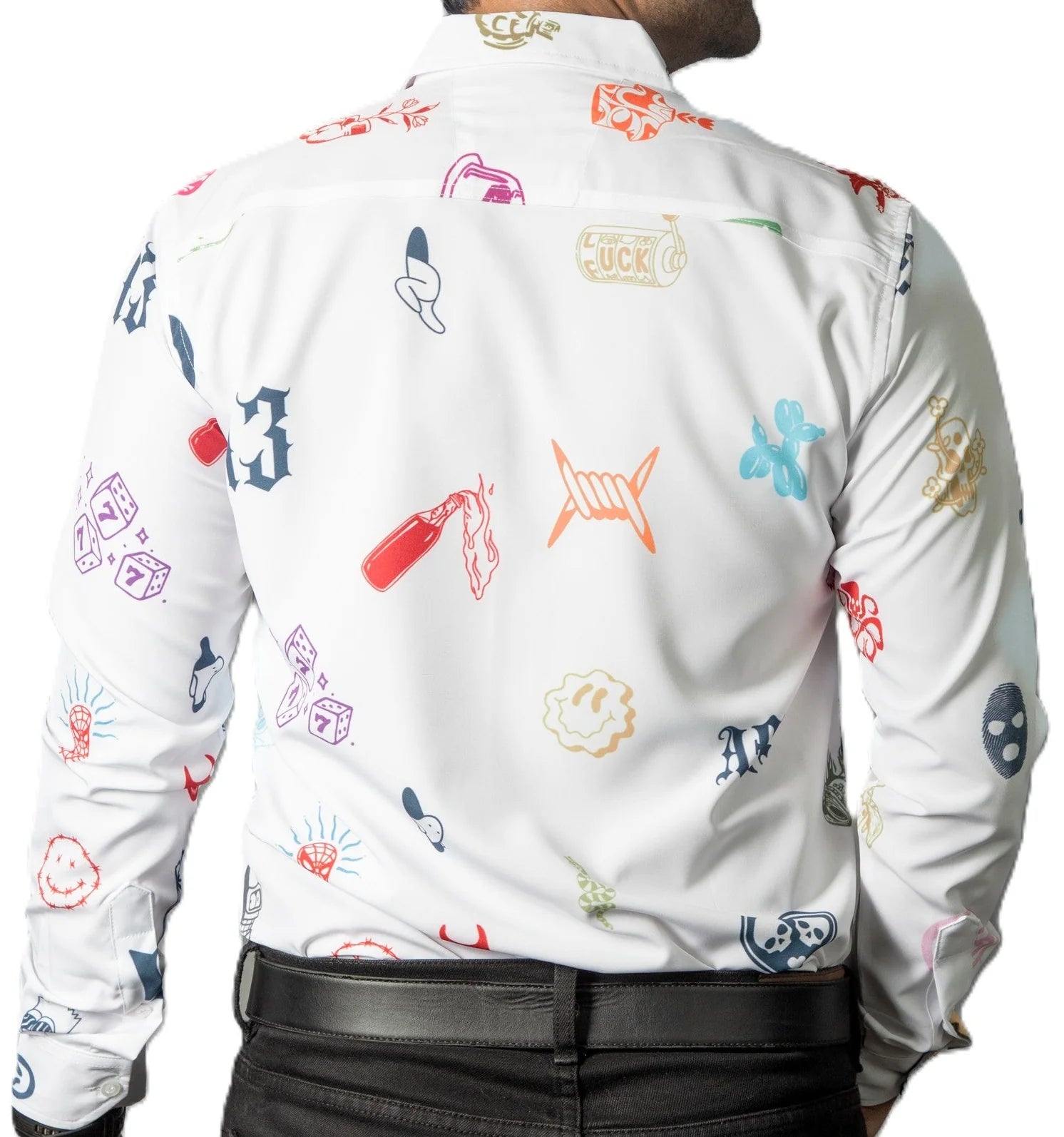 Camisa Hombre Casual Blanca Mini Figuras Colores