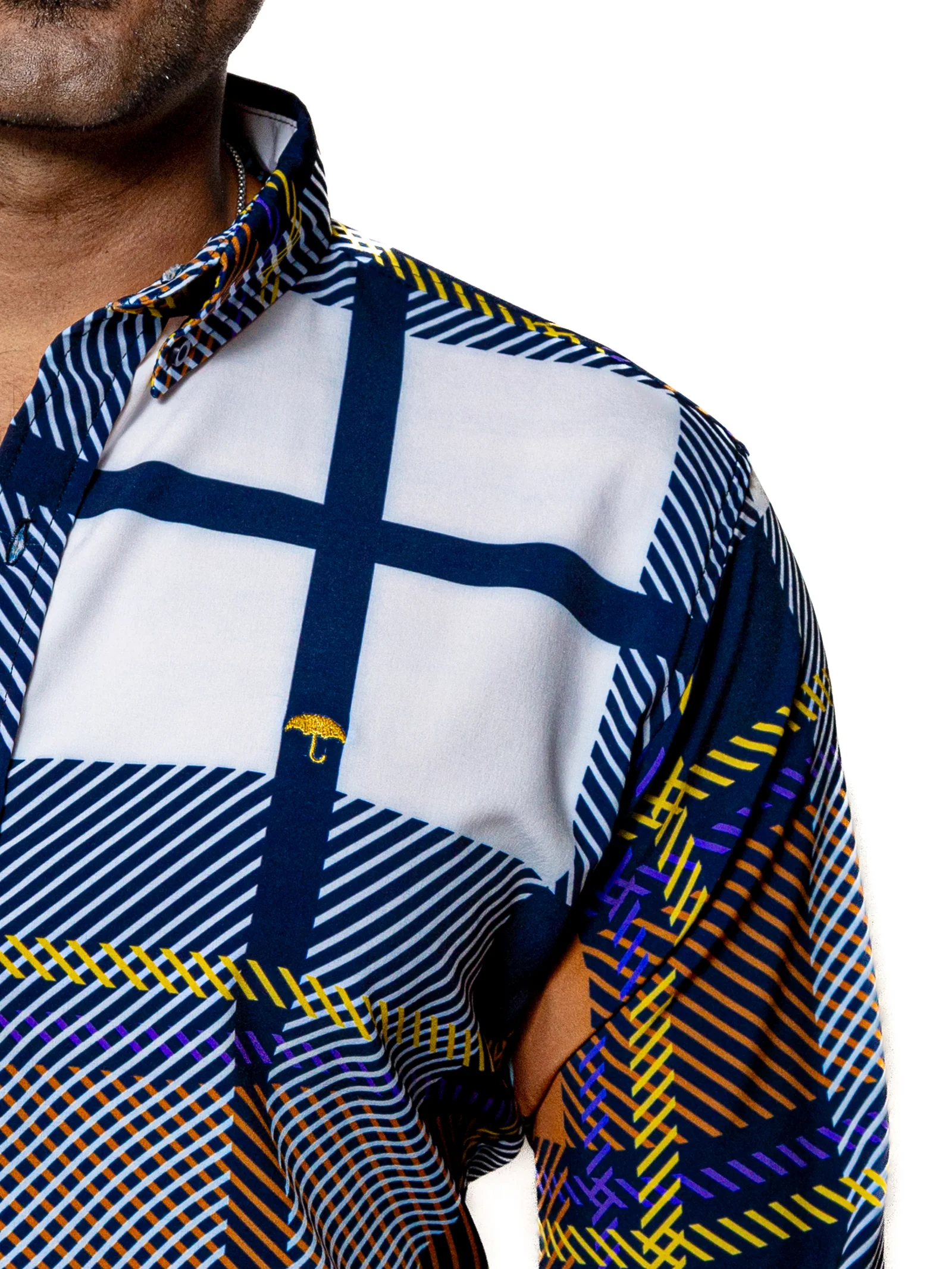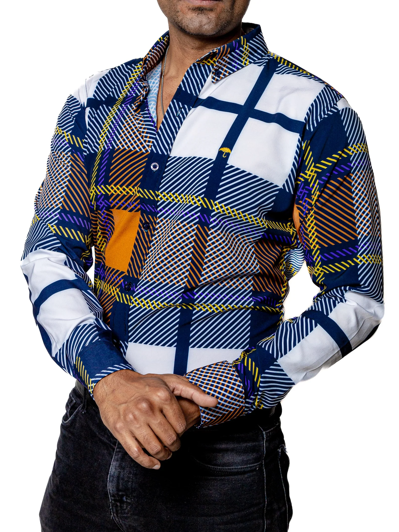 CAMISA HOMBRE CASUAL CUADROS MARINO, BLANCO, NARANJA