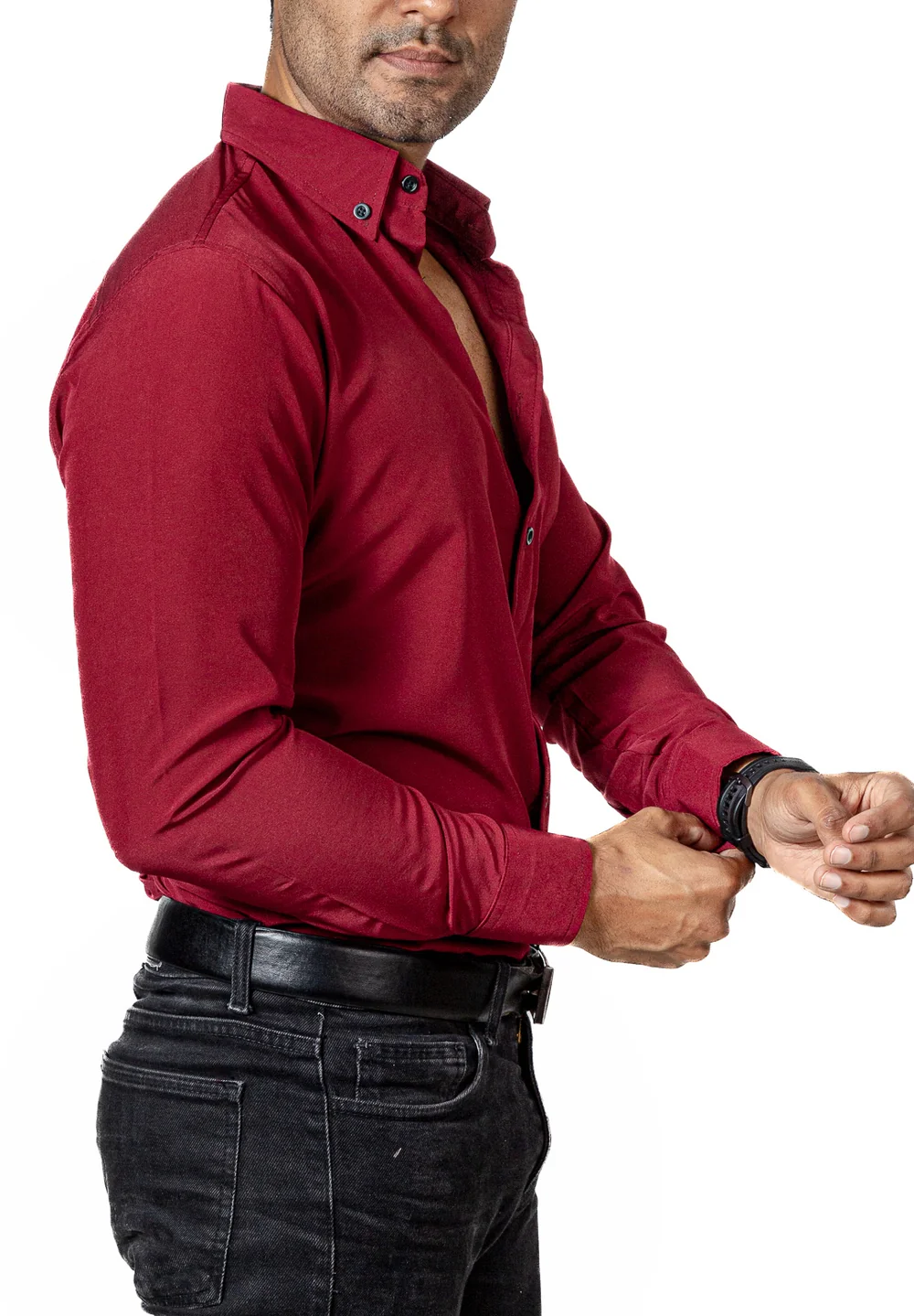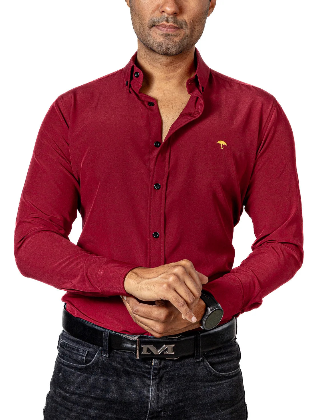 CAMISA HOMBRE CASUAL ROJA OSCURA LISA