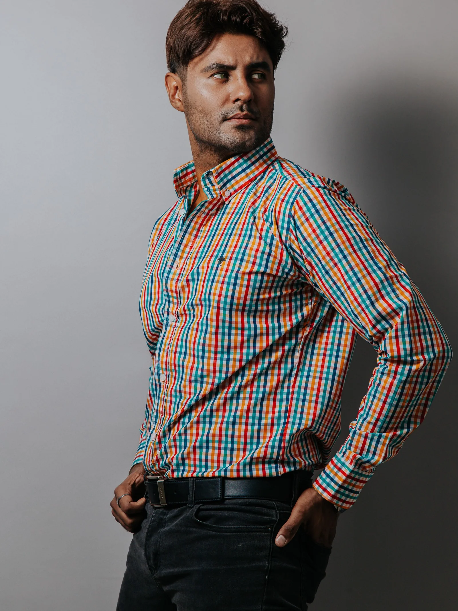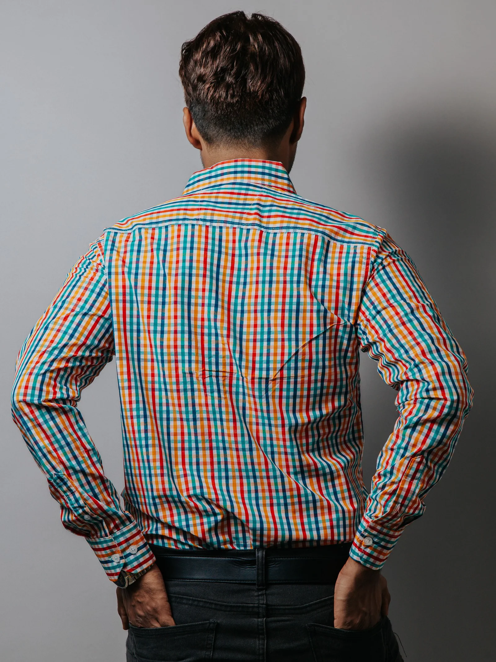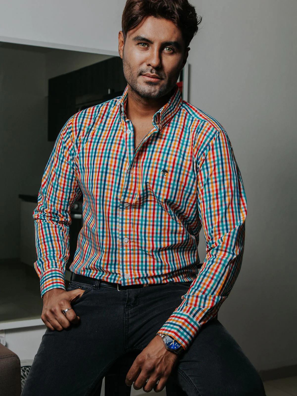 CAMISA HOMBRE SLIM FIT, CUADROS AMARILLOS, ROJOS, VERDES, AZUL