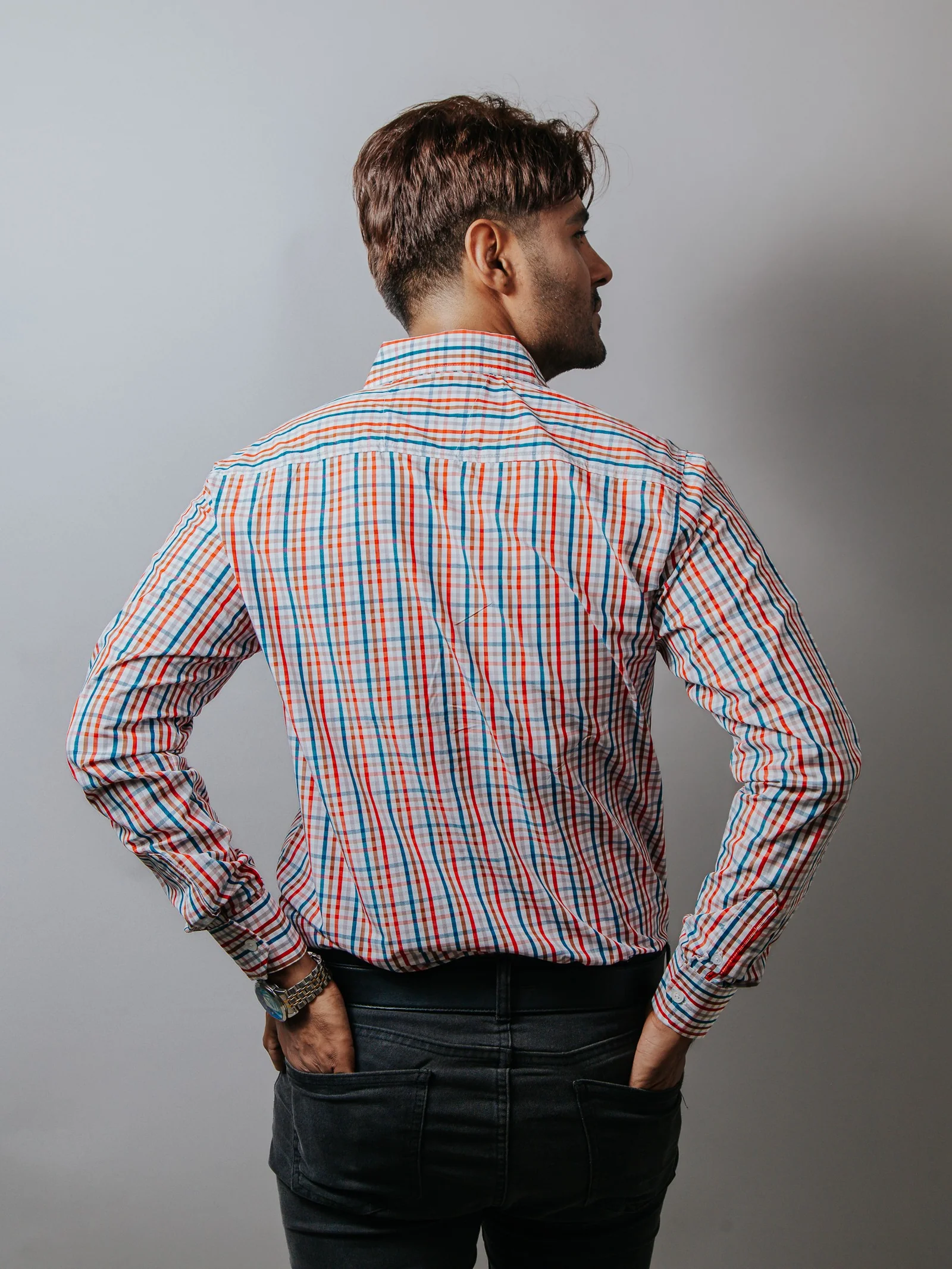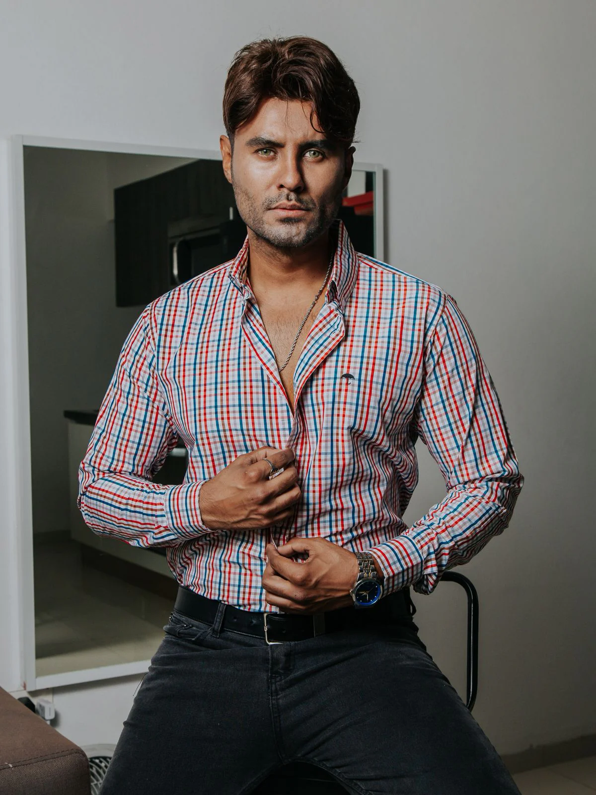 CAMISA HOMBRE SLIM FIT, CUADROS AZUL, MARRÓN, ROJOS, GRIS
