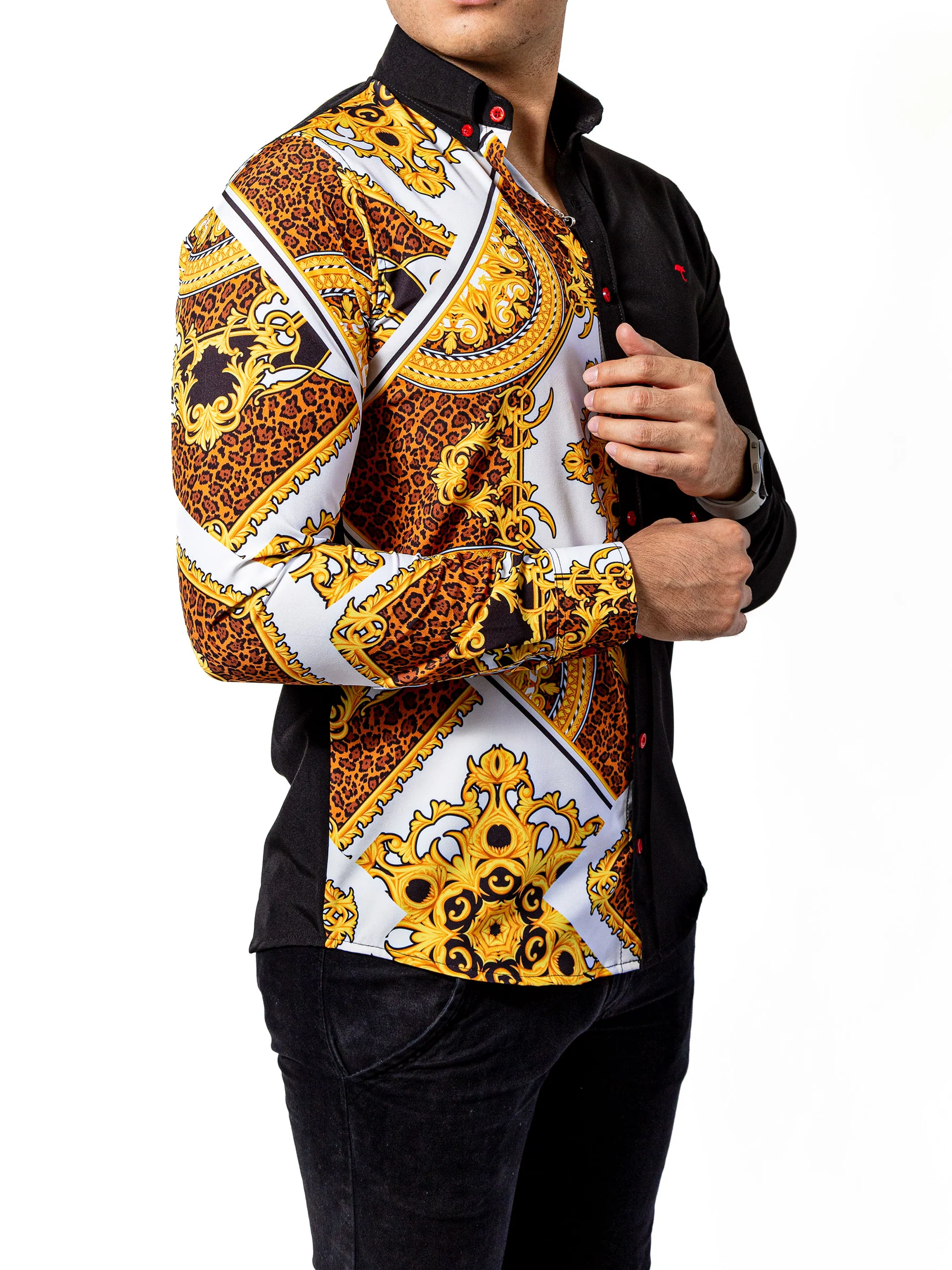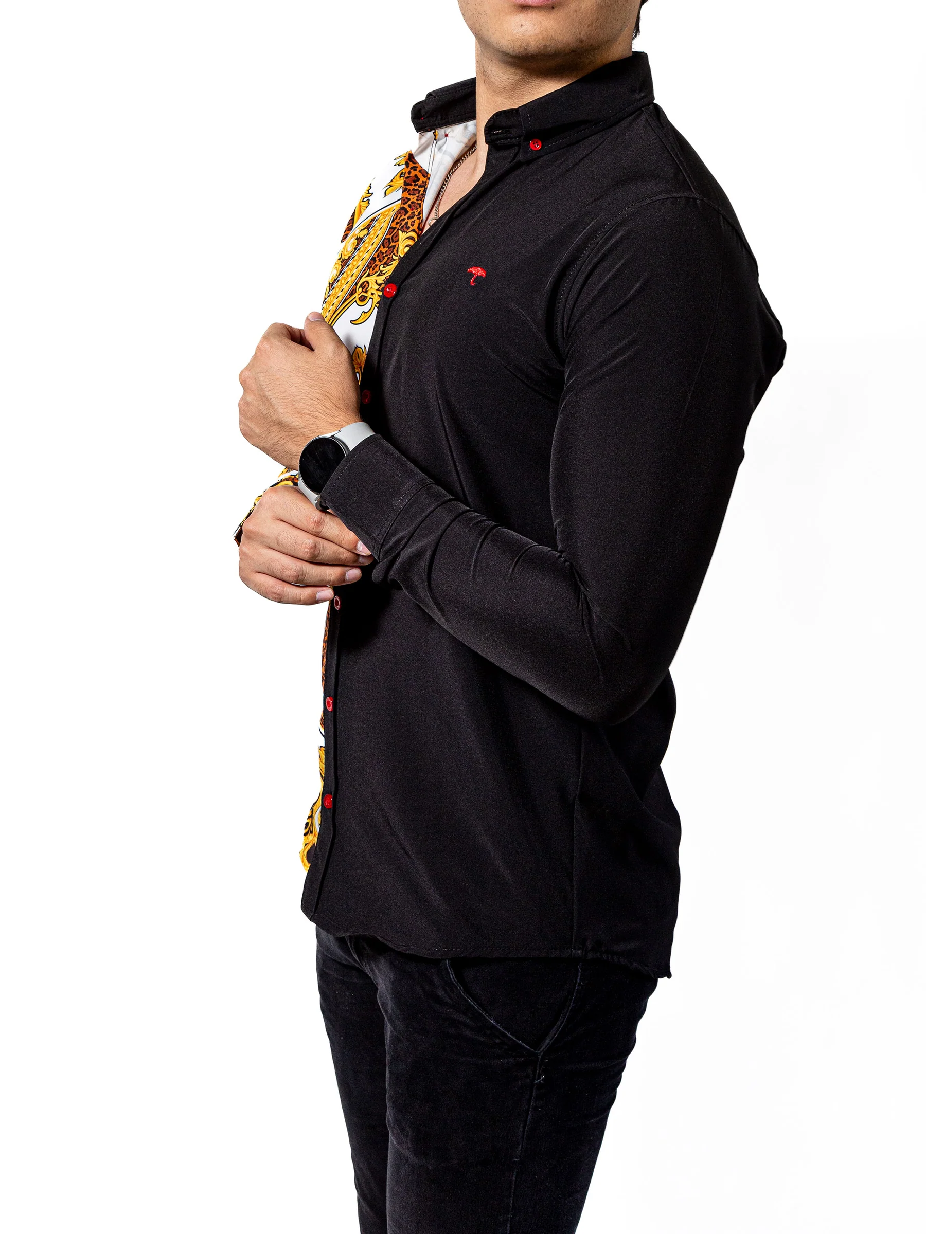 CAMISA HOMBRE SLIM FIT FIGURAS BARROCO DORADAS NEGRA
