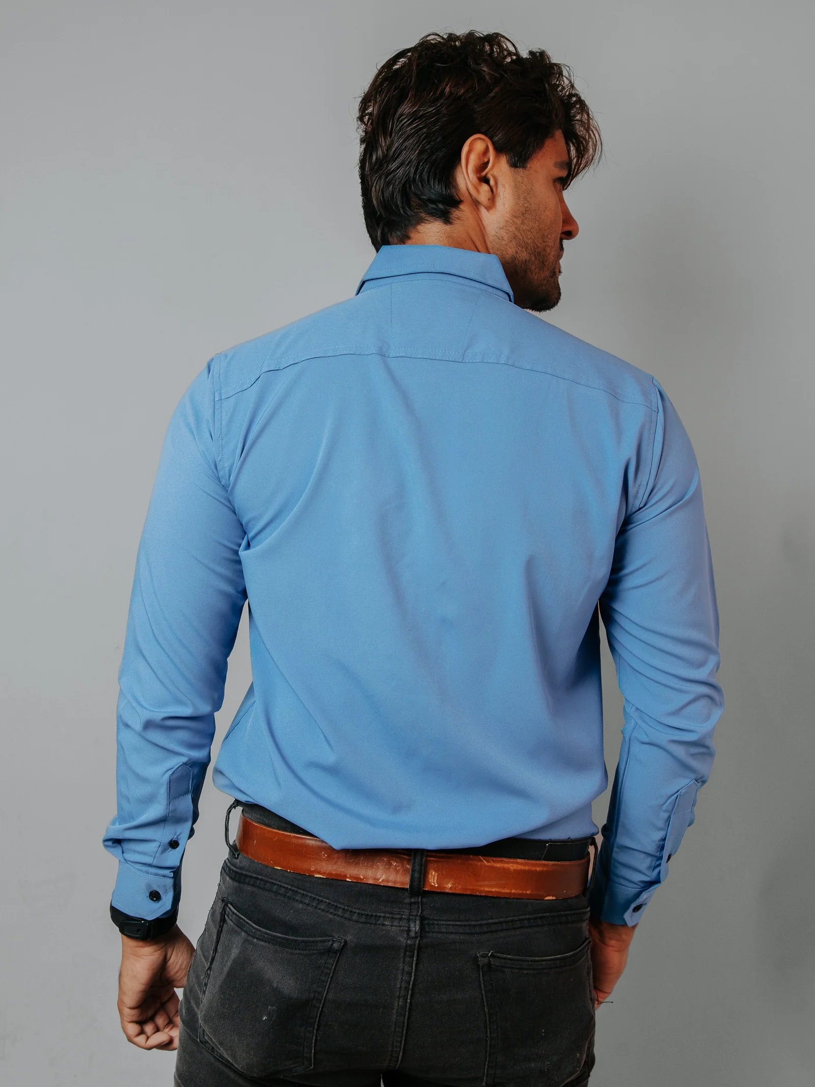 CAMISA HOMBRE SLIM FIT, LISA AZUL MAYA