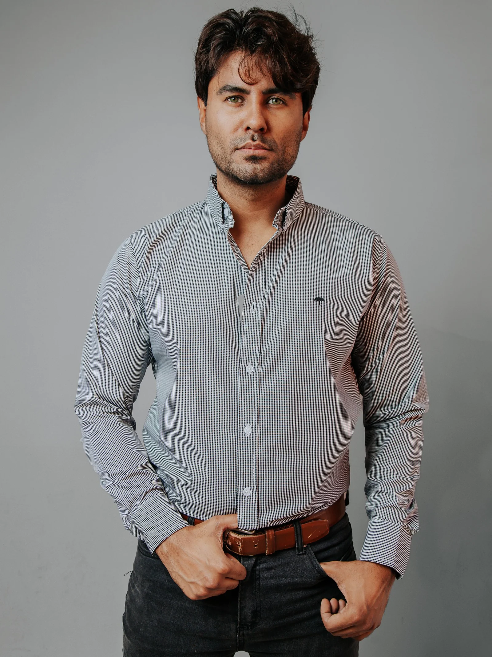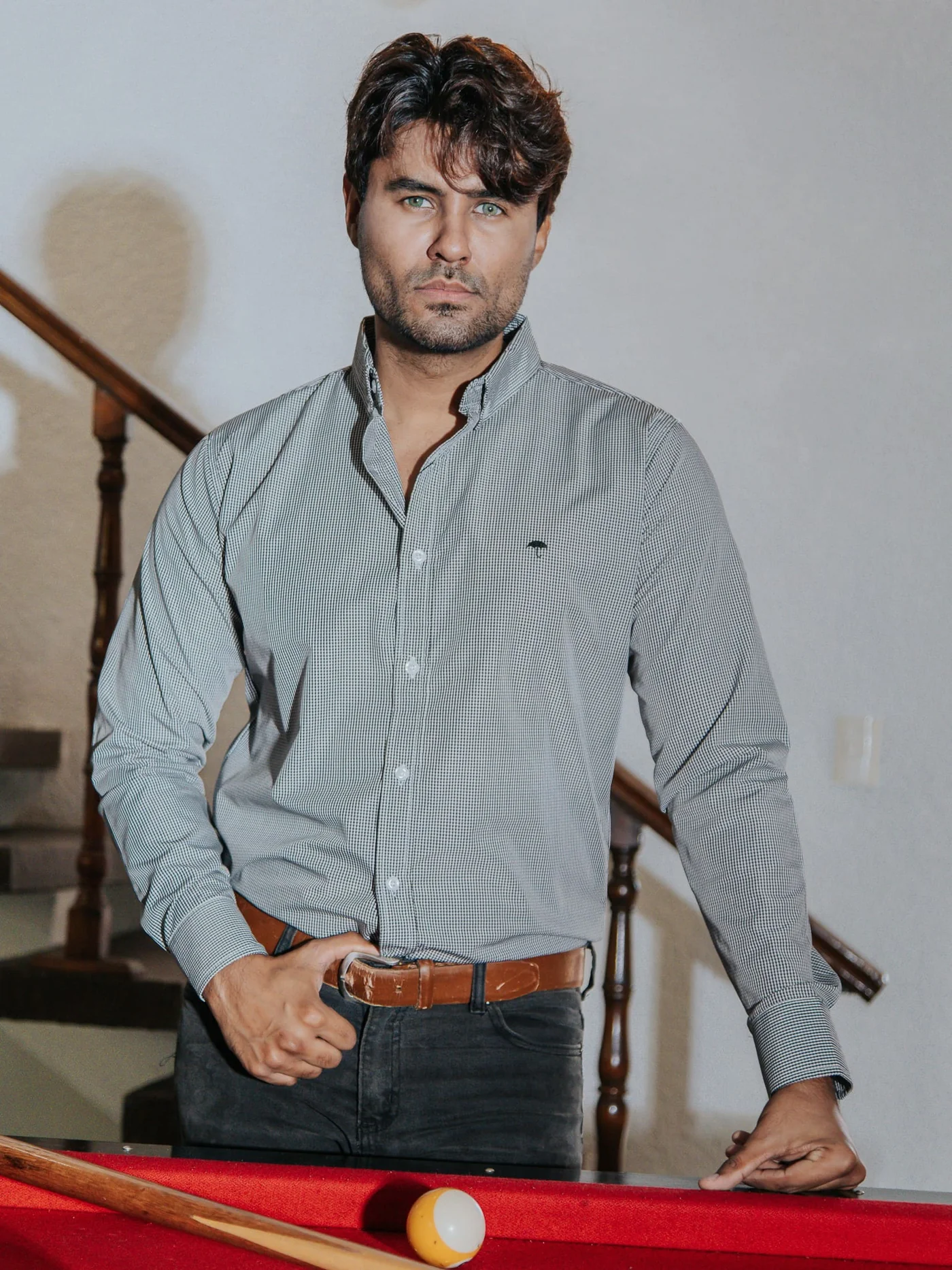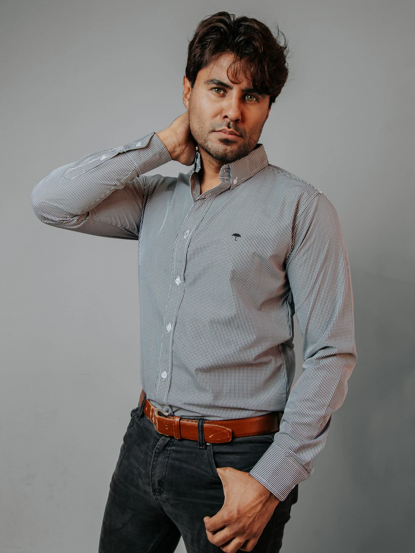 CAMISA HOMBRE SLIM FIT, MICROCUADRO NEGRO