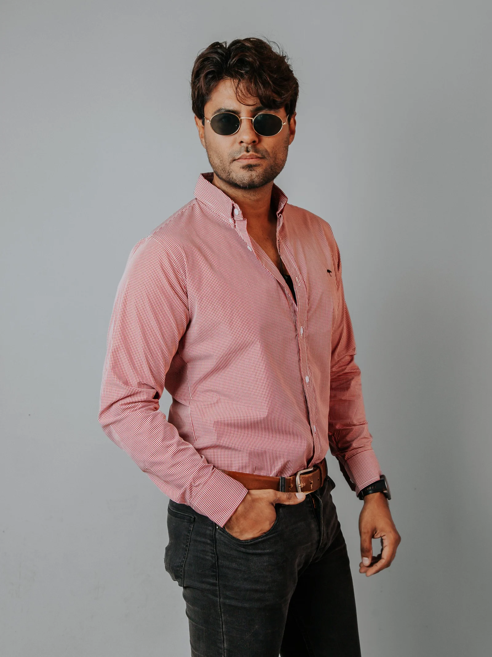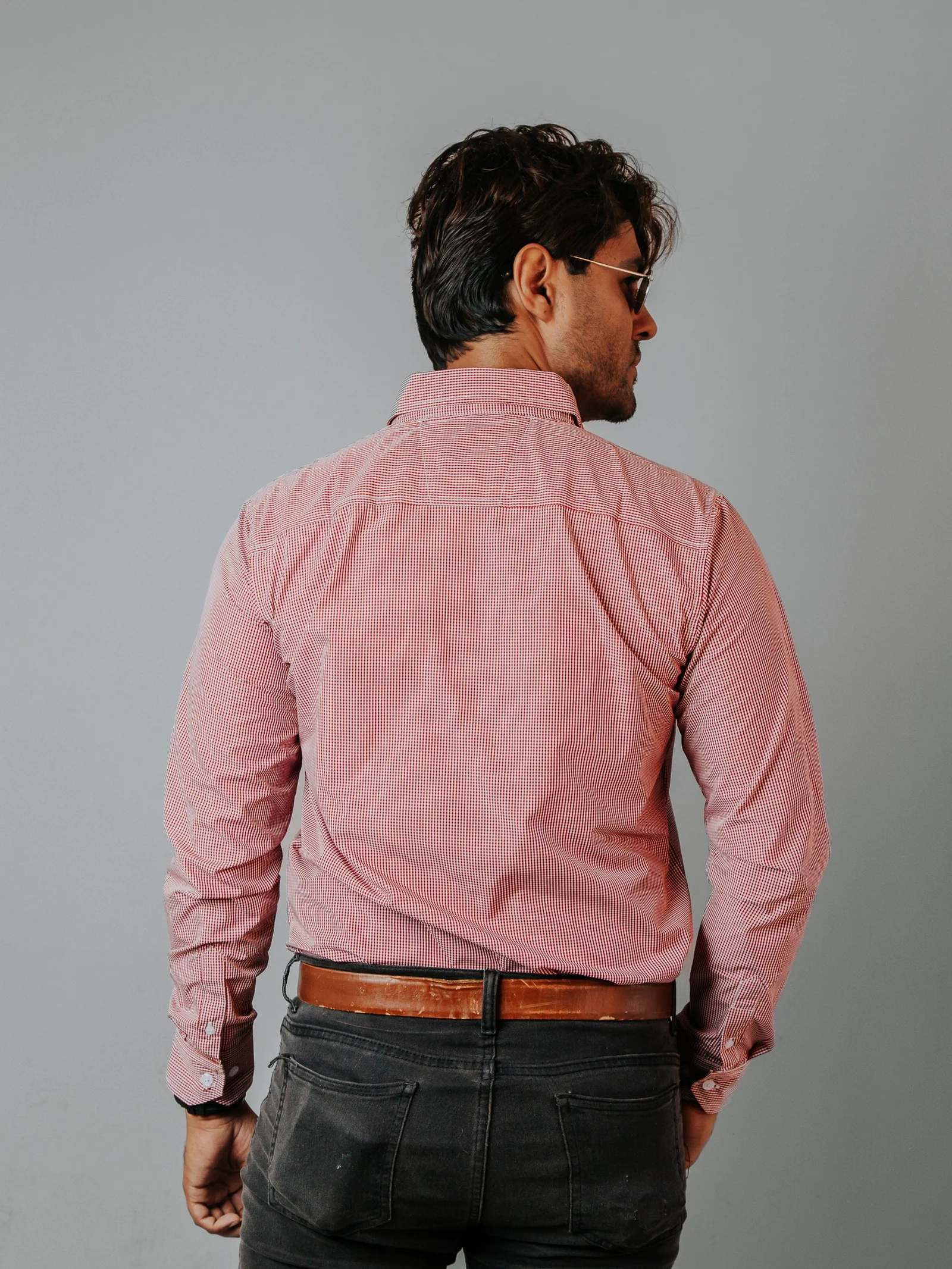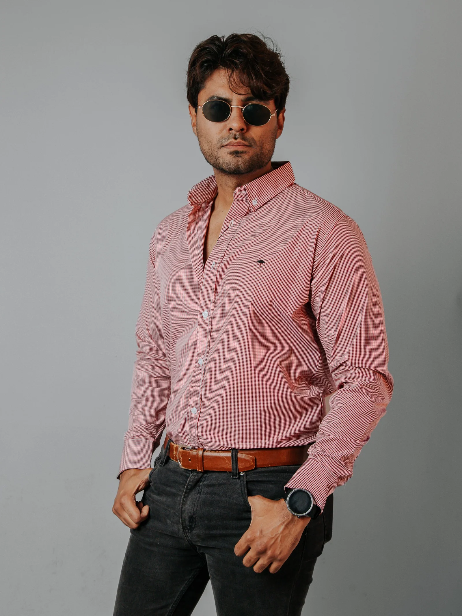 CAMISA HOMBRE SLIM FIT, MICROCUADRO ROJO