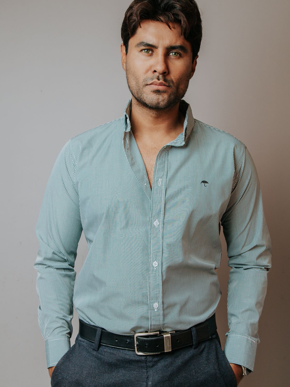 CAMISA HOMBRE SLIM FIT, MICROCUADRO VERDE