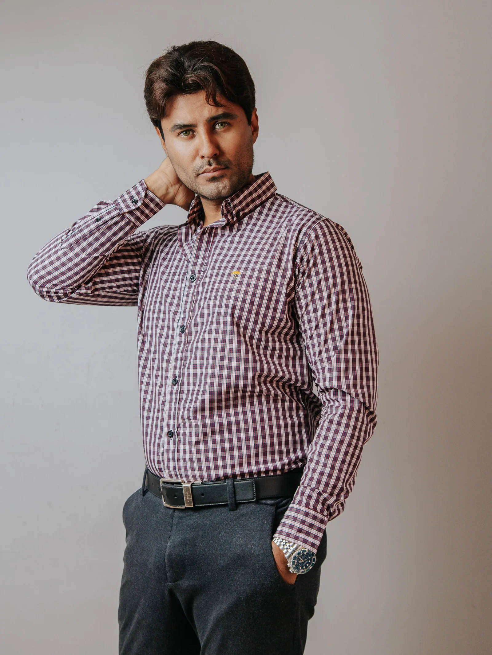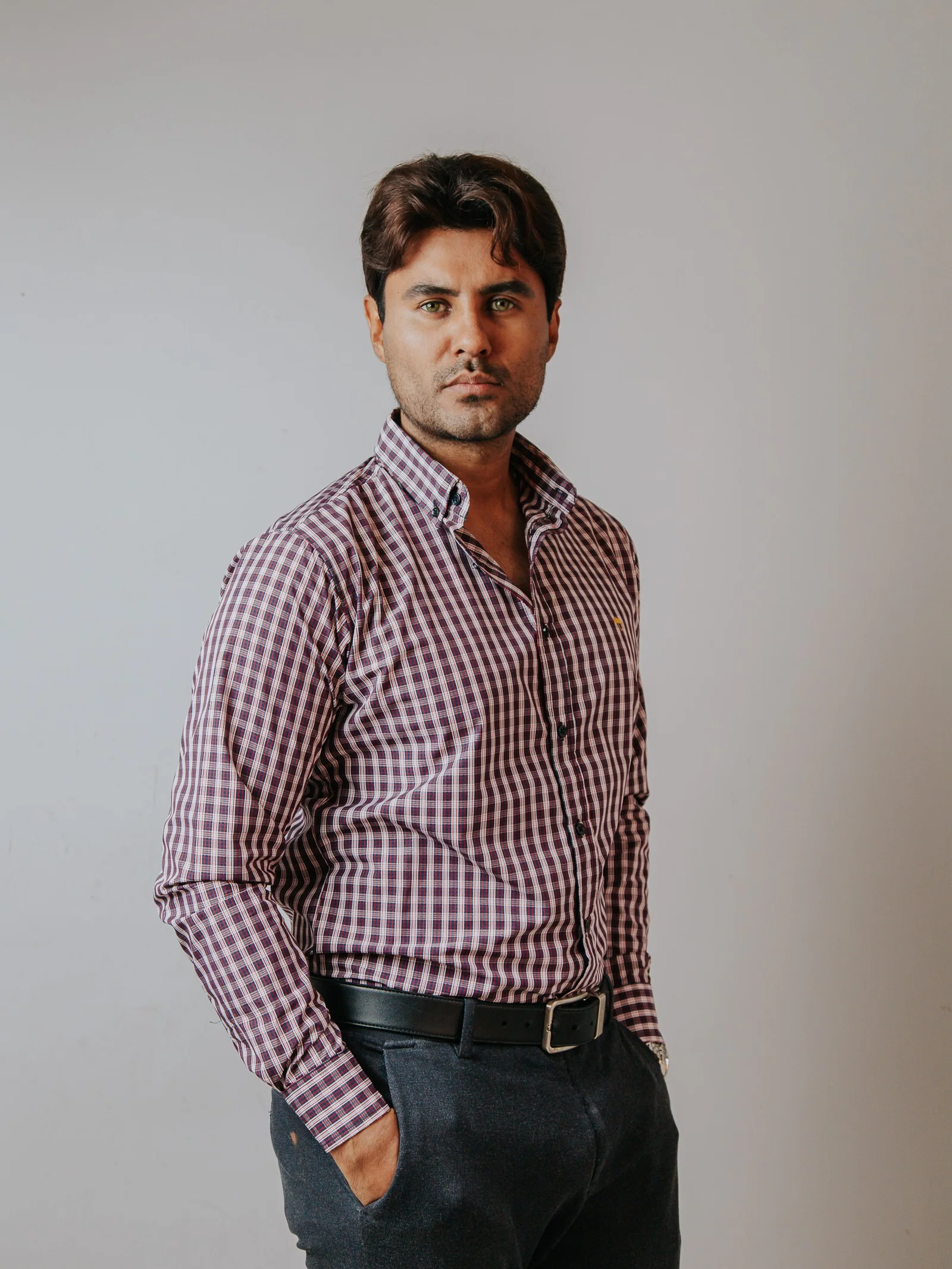 CAMISA HOMBRE SLIM FIT, MINICUADRO ROJO AZUL MARINO Y BLANCO