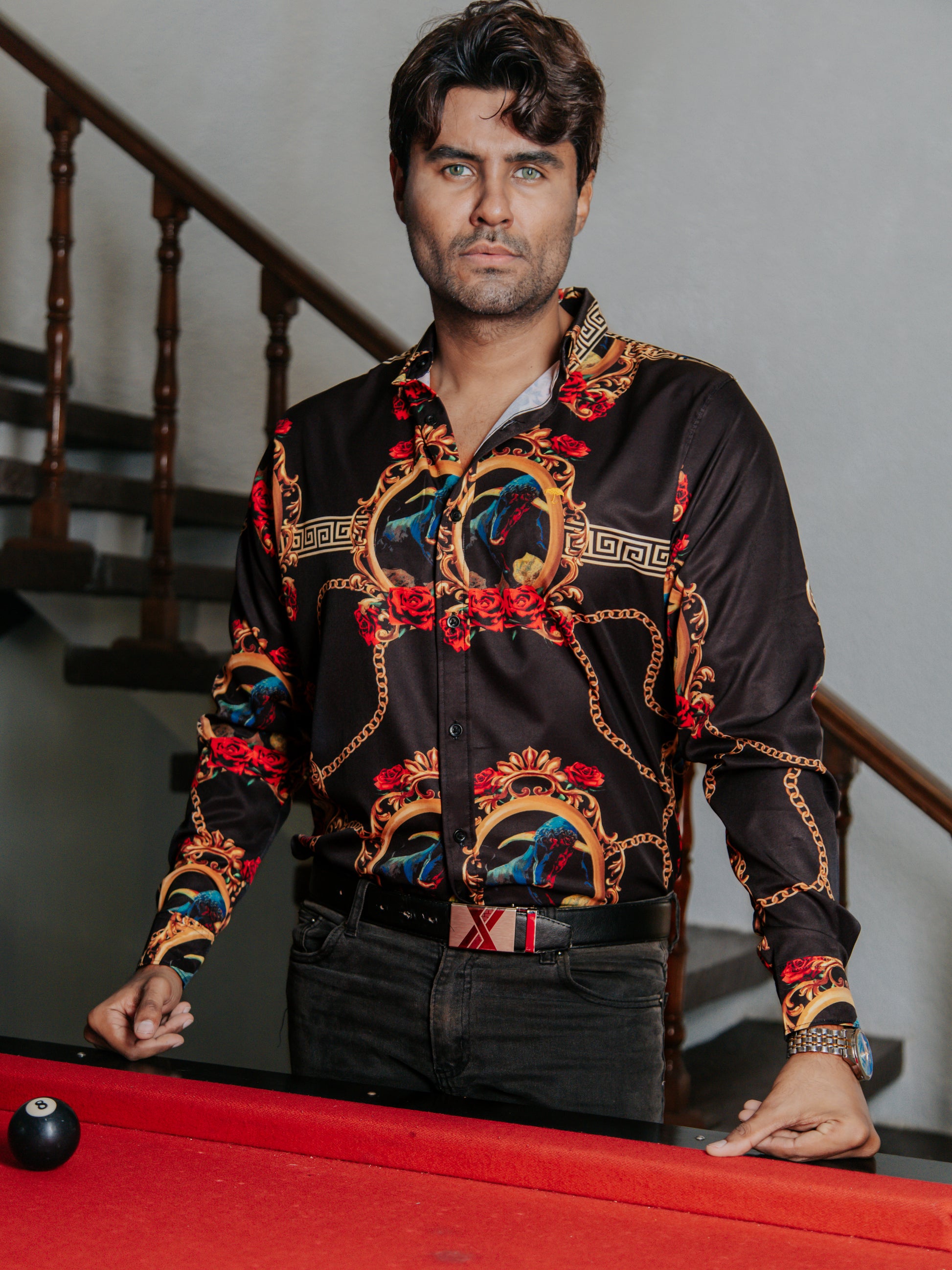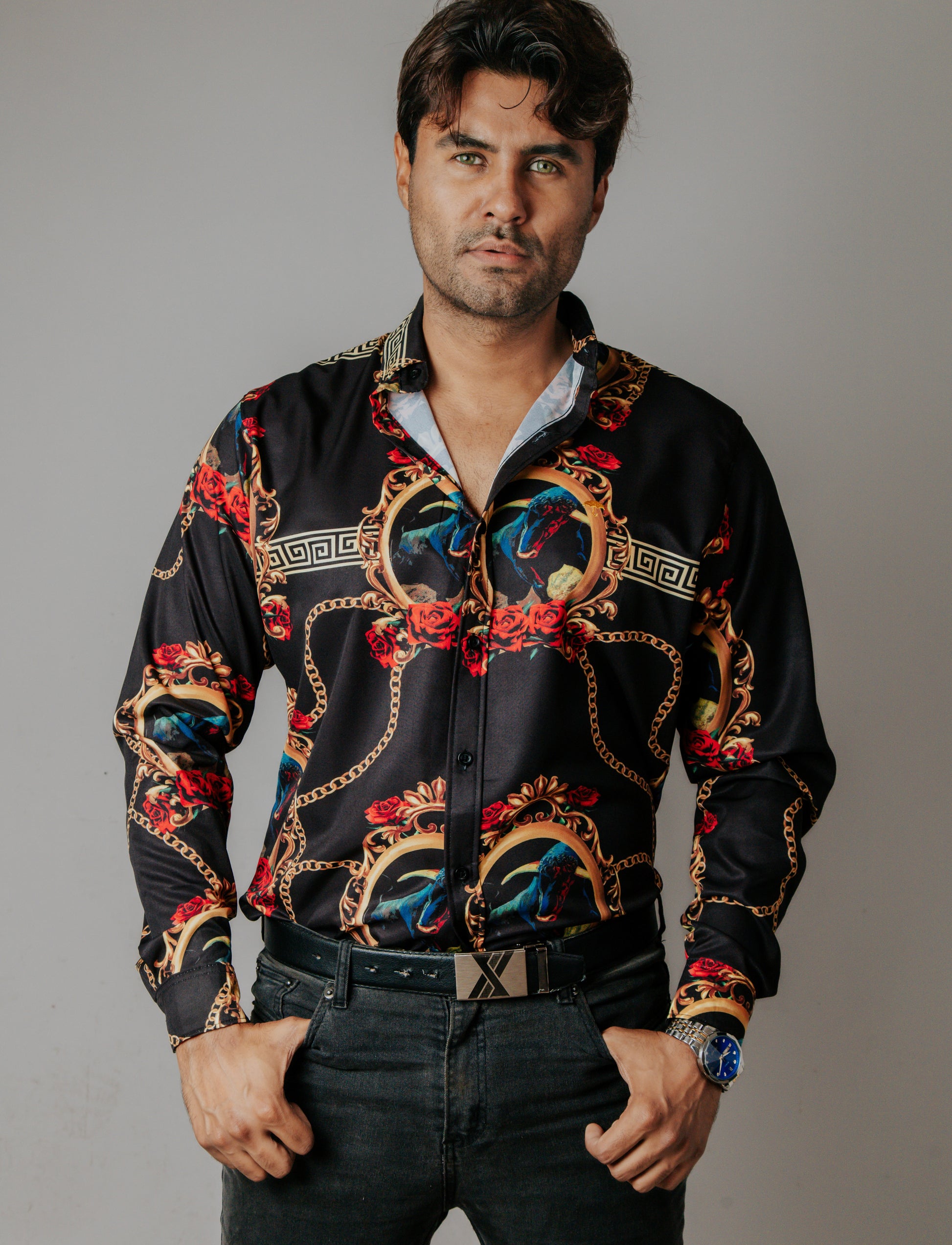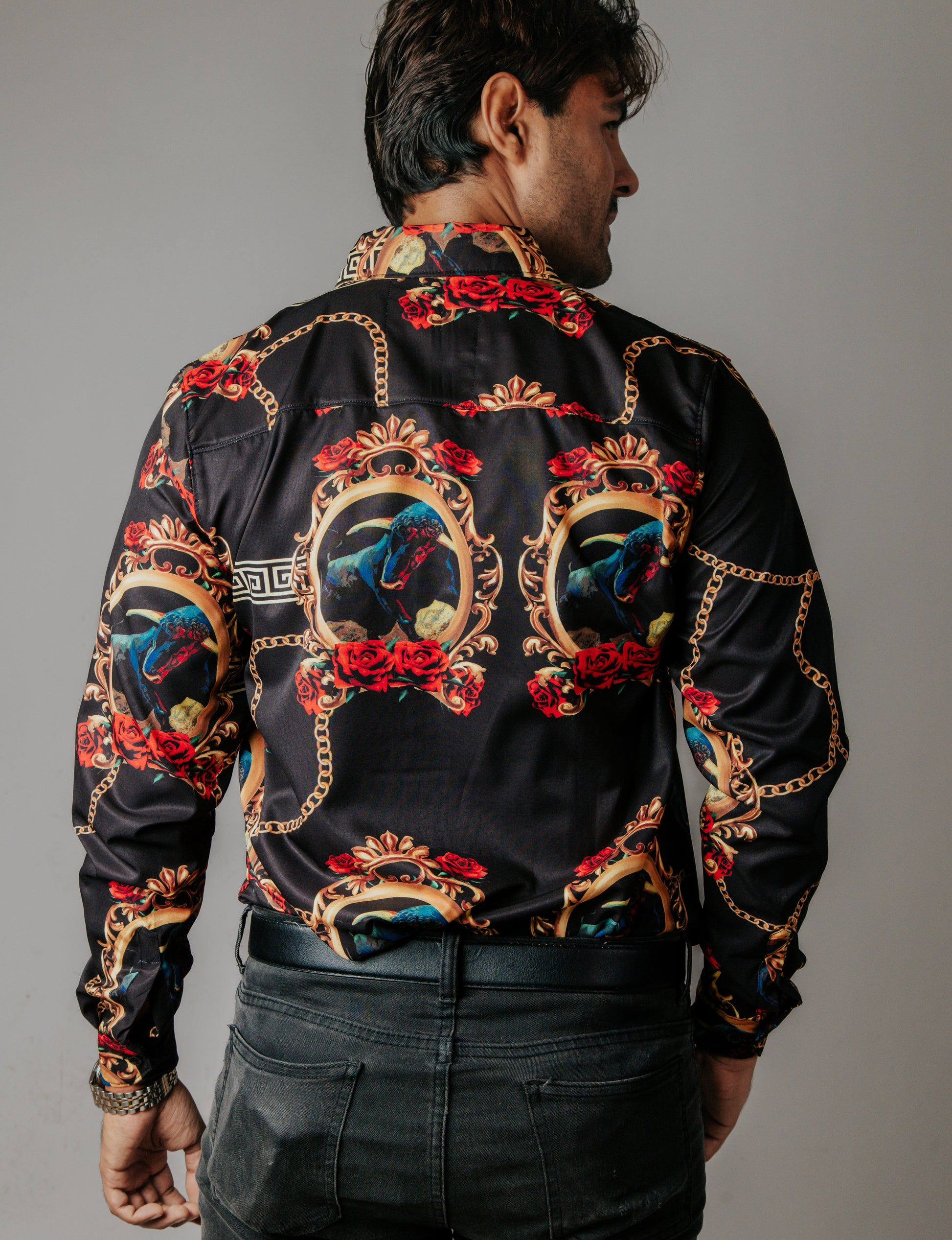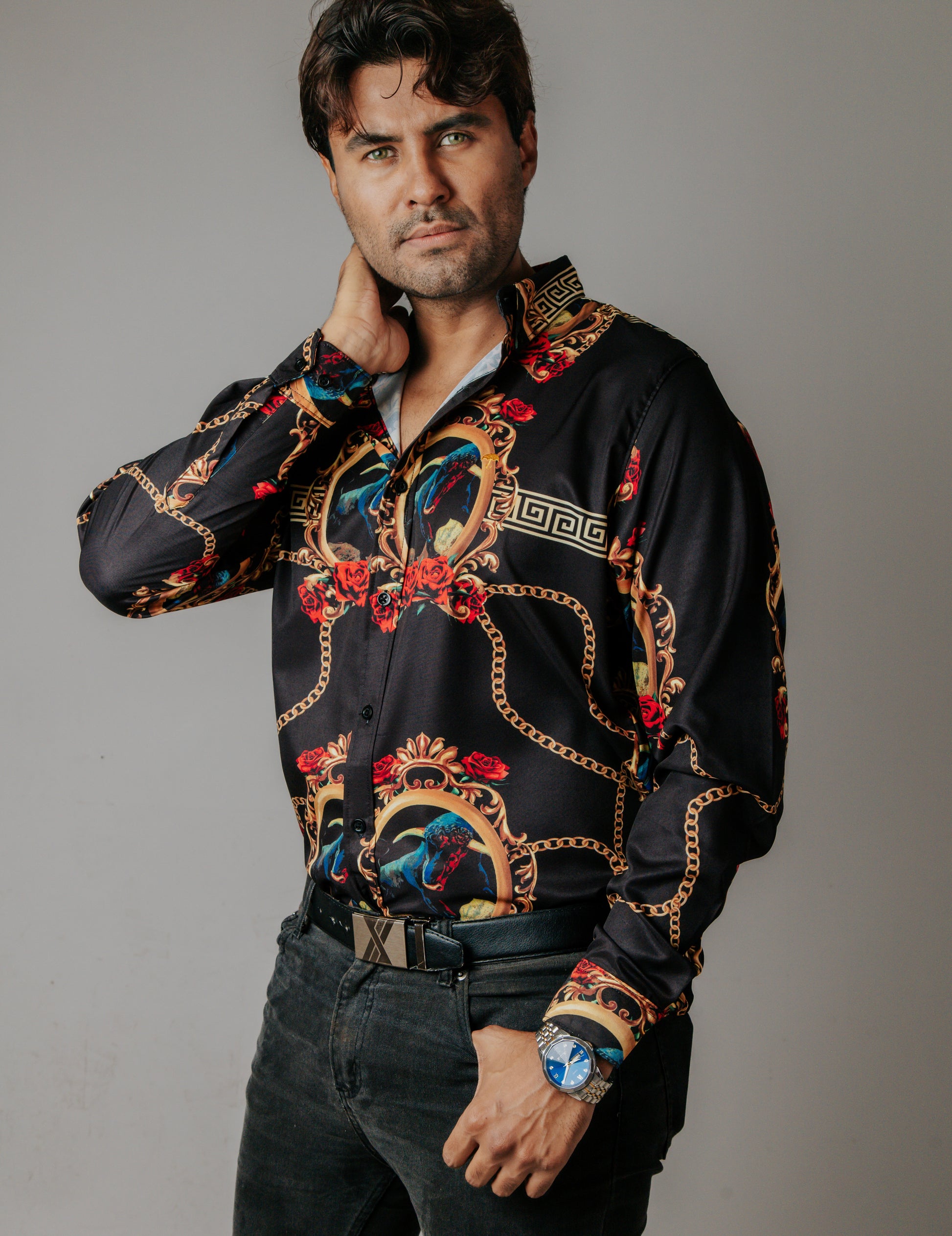 CAMISA HOMBRE SLIM FIT, NEGRA TORO MEDALLÓN