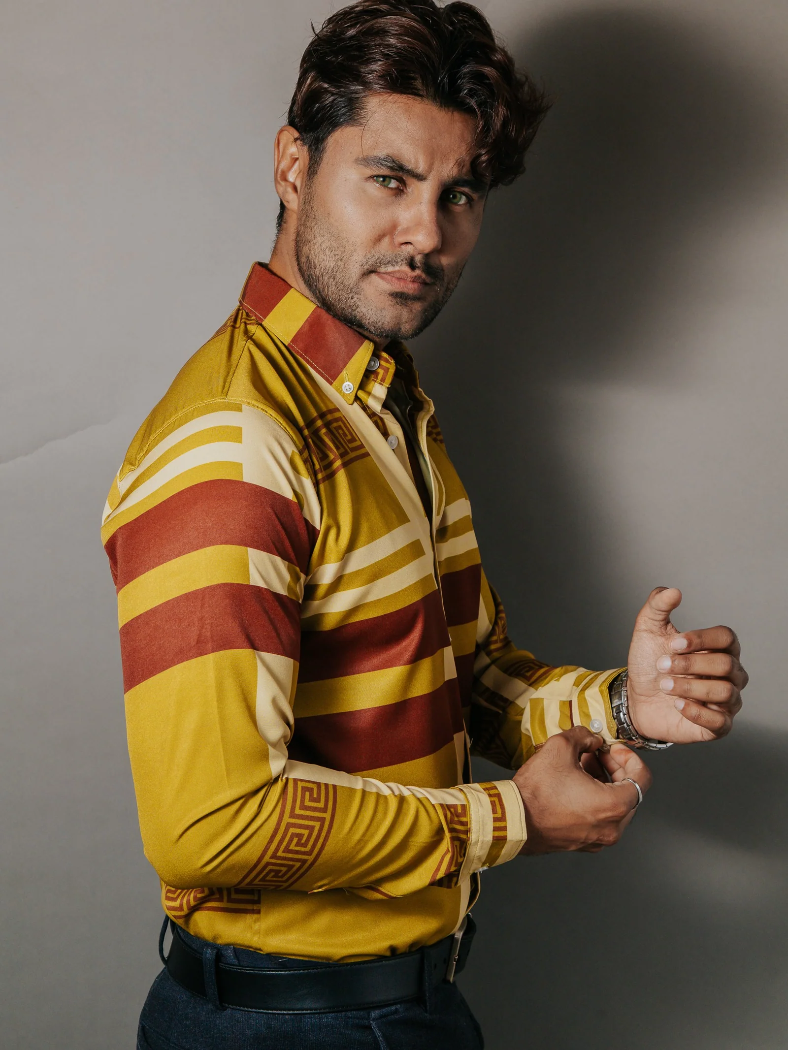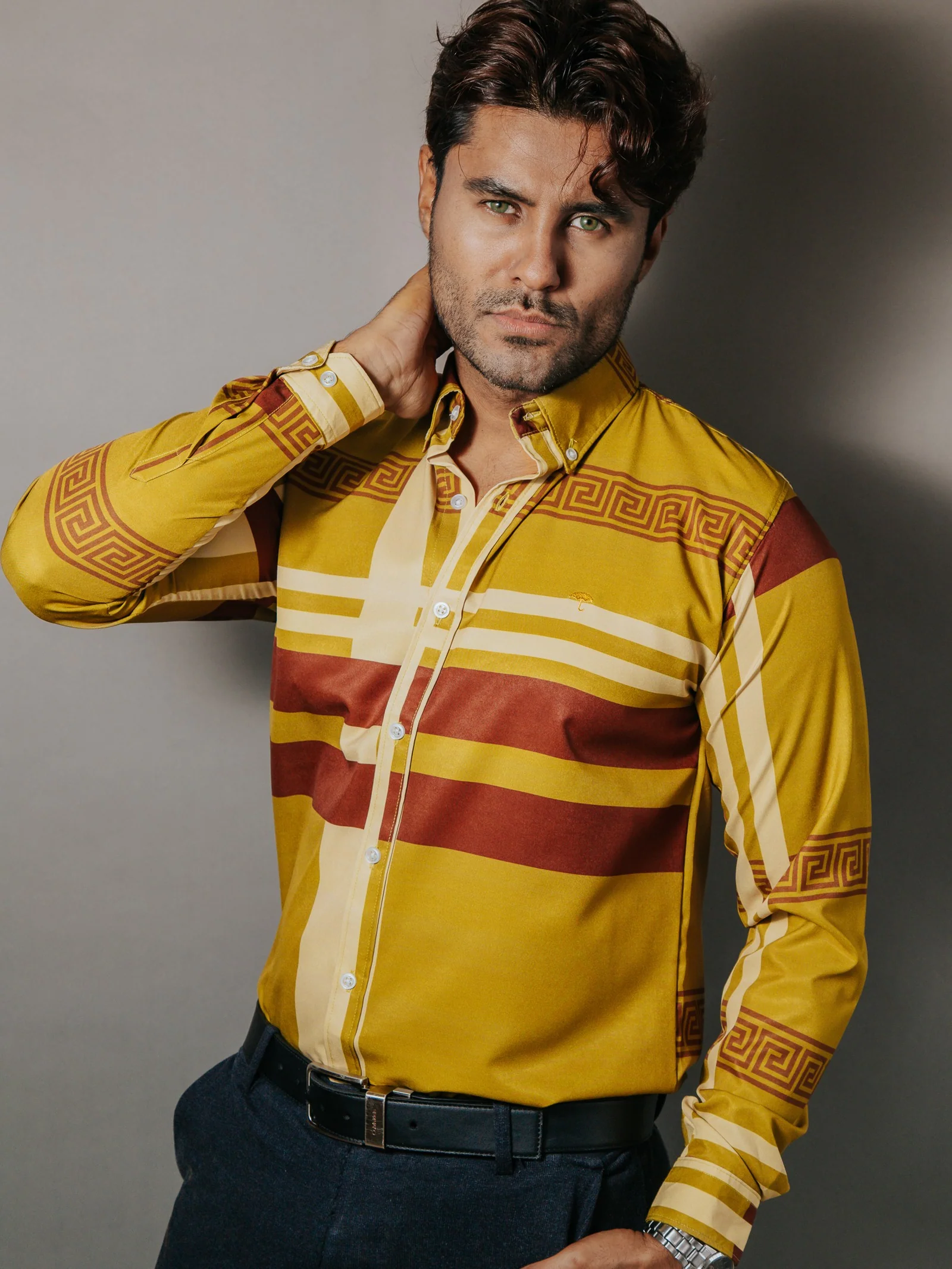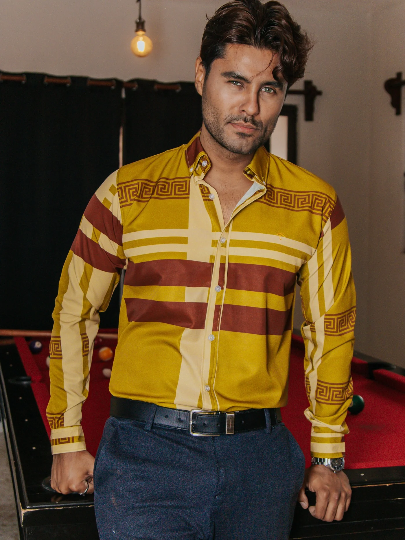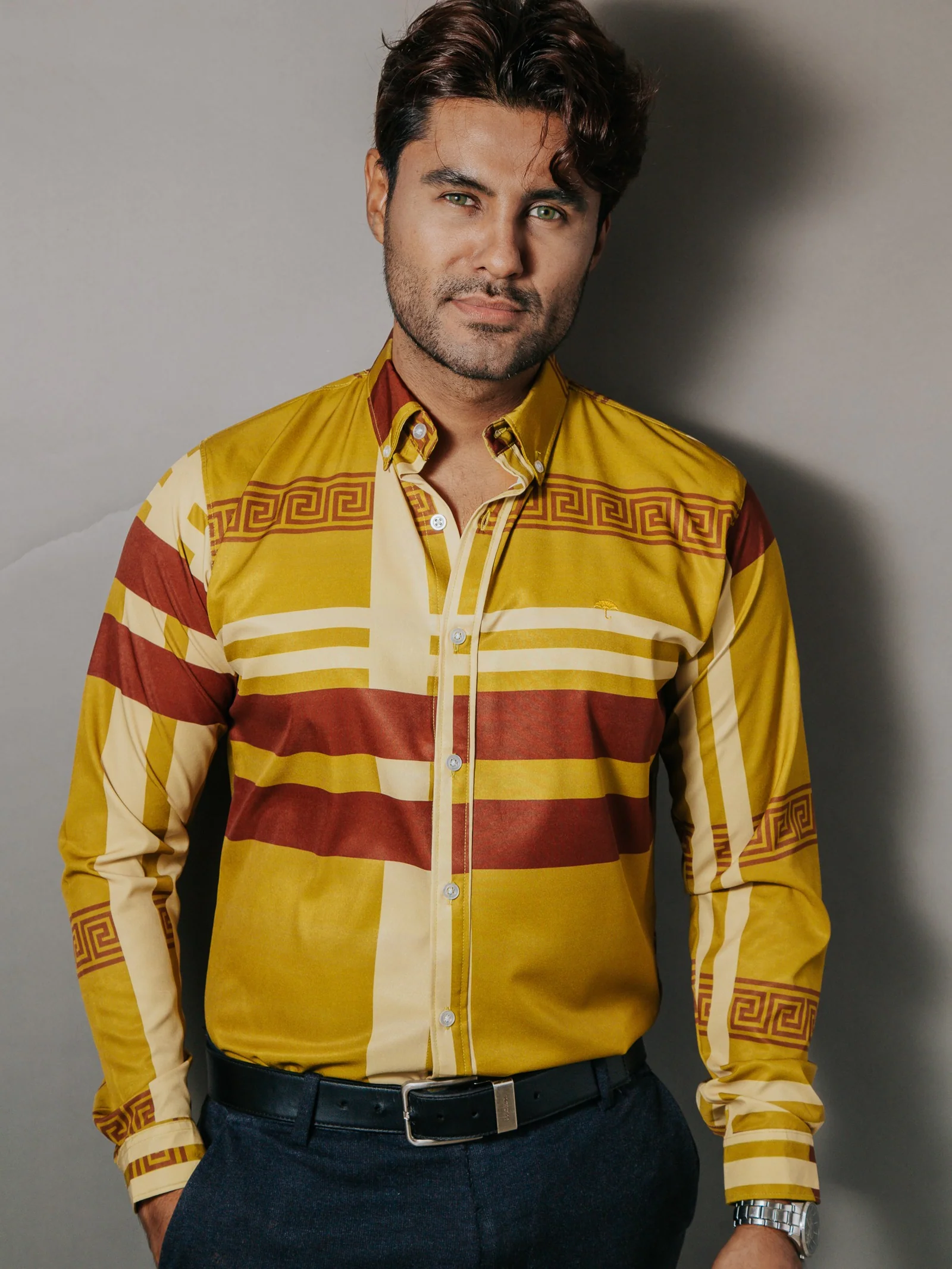 CAMISA HOMBRE SLIM FIT VERDE OLIVO DETALLE GRIEGO CHOCOLATE
