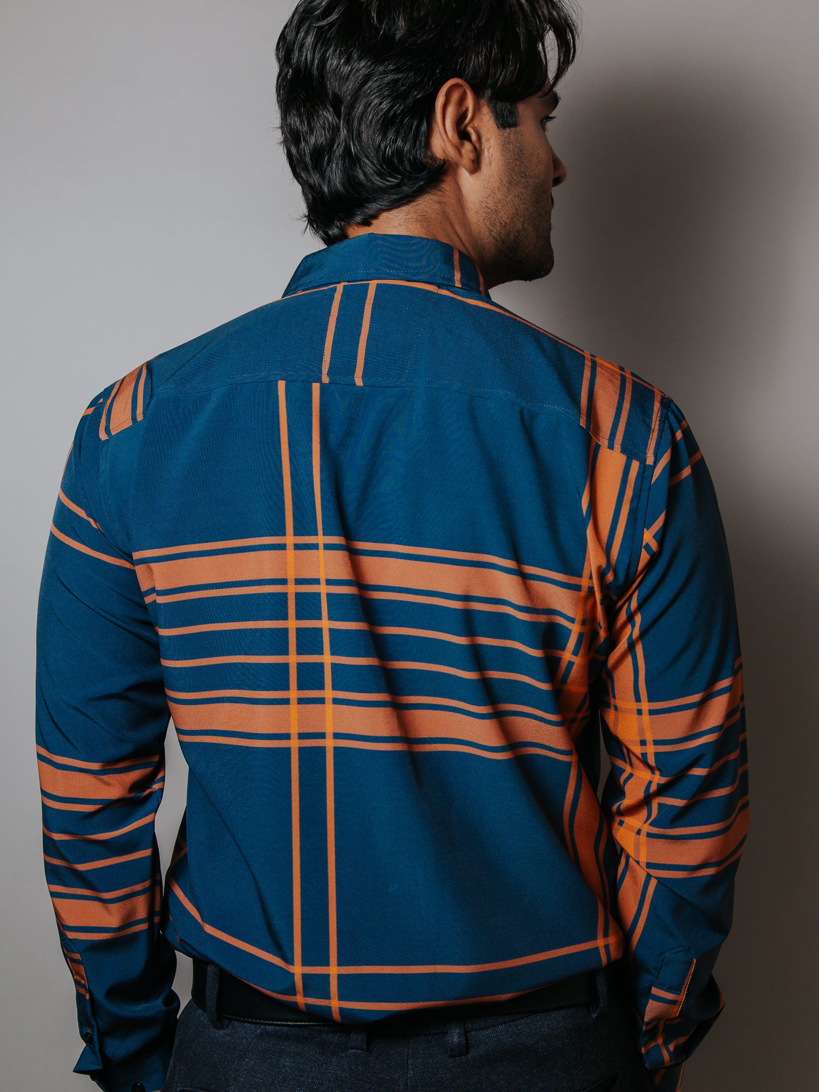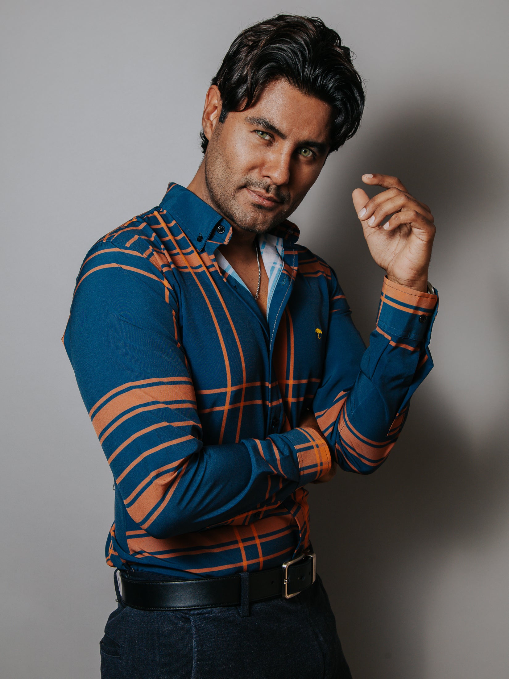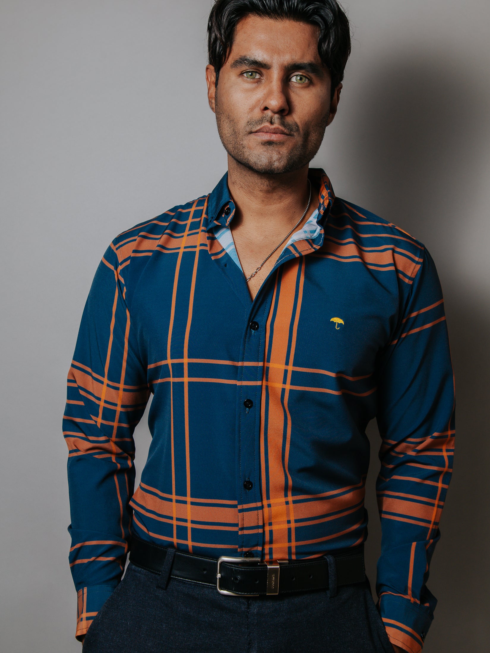 CAMISA SLIM FIT HOMBRE, MELÓN LÍNEAS NARANJA, NEGRA Y BLANCA