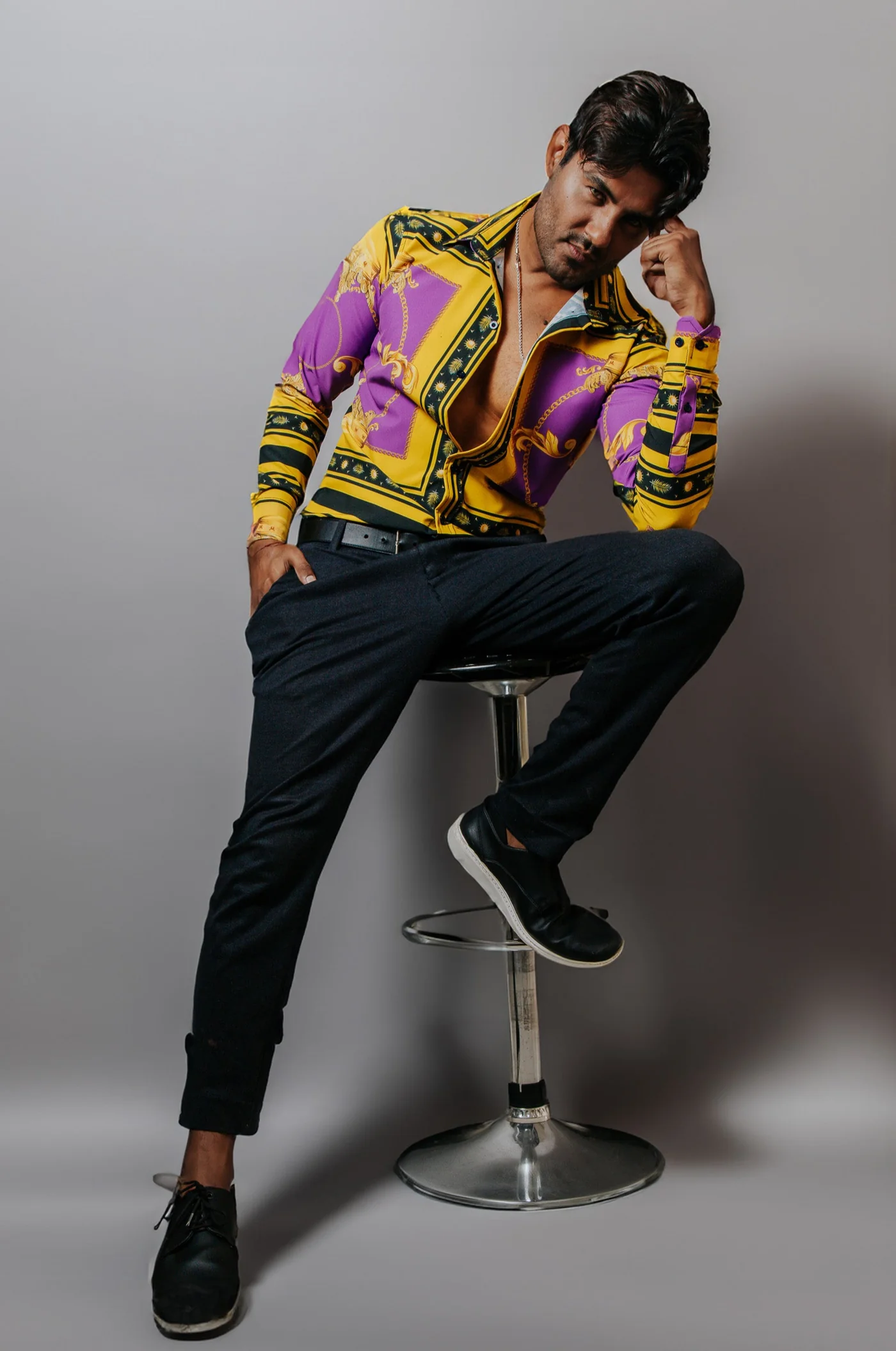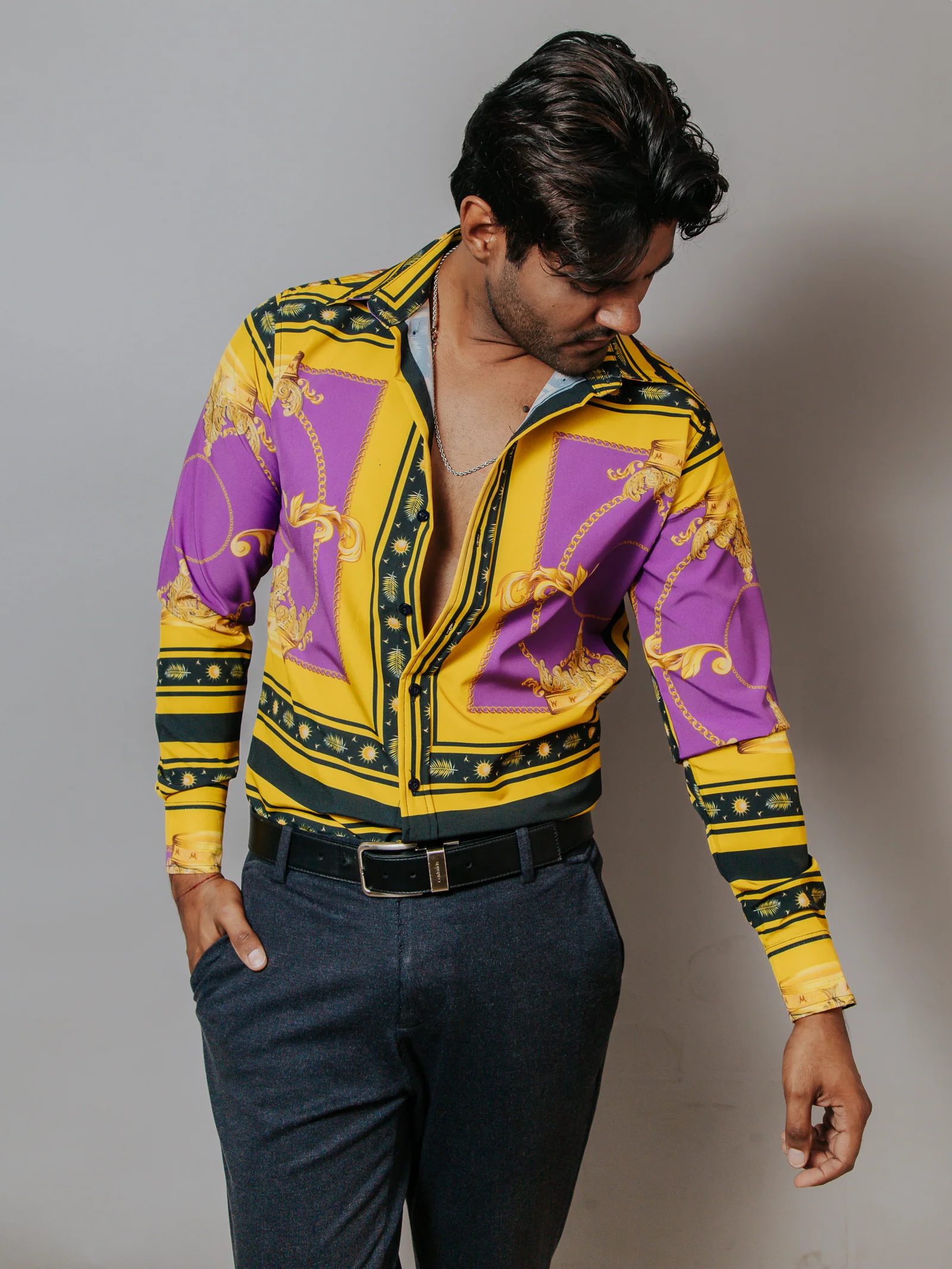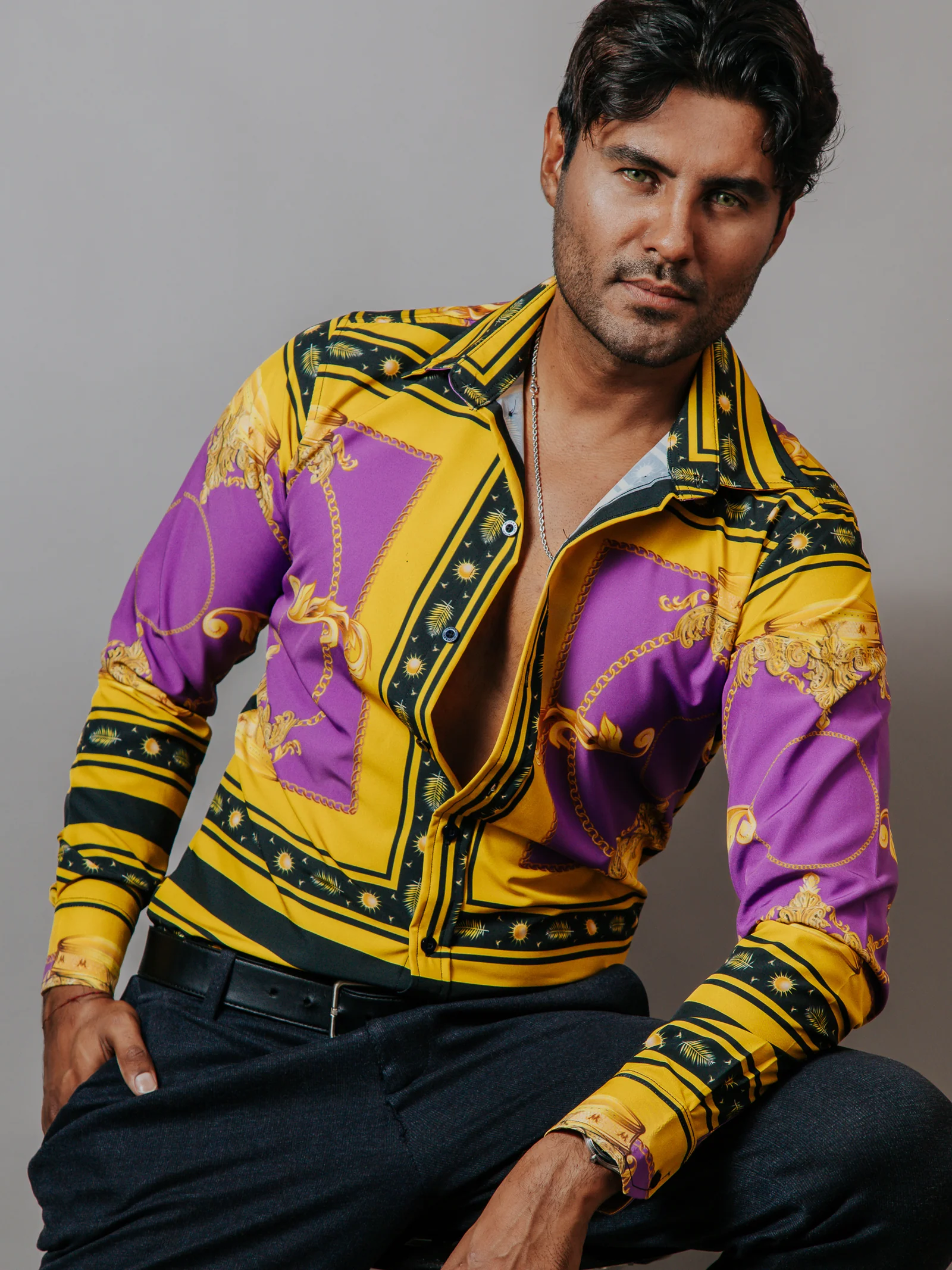 CAMISA SLIM FIT LUIS MIGUEL, MORADA Y DORADO