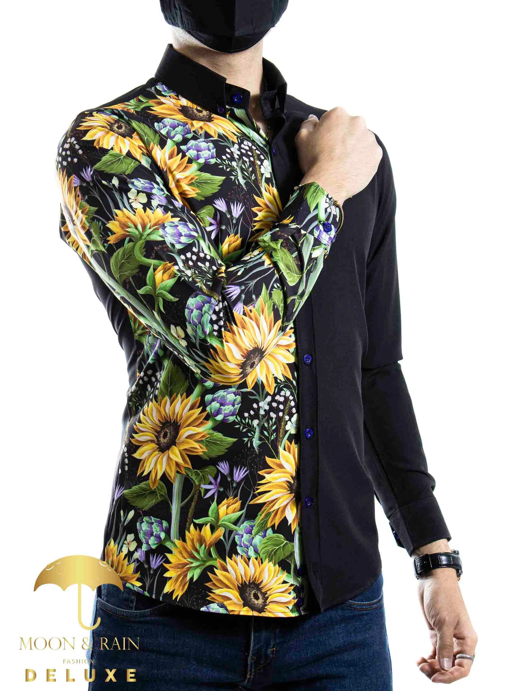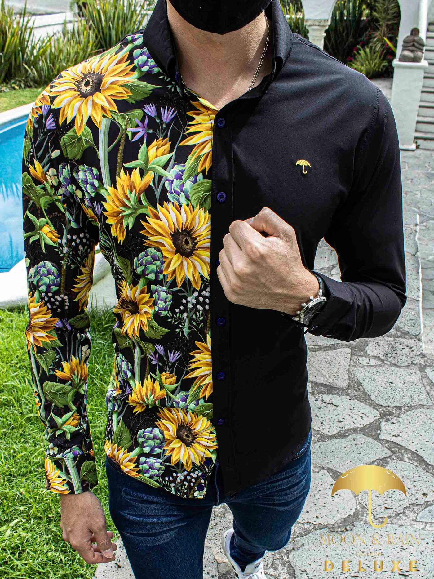 CAMISA SLIM FIT NEGRA MITAD GIRASOLES