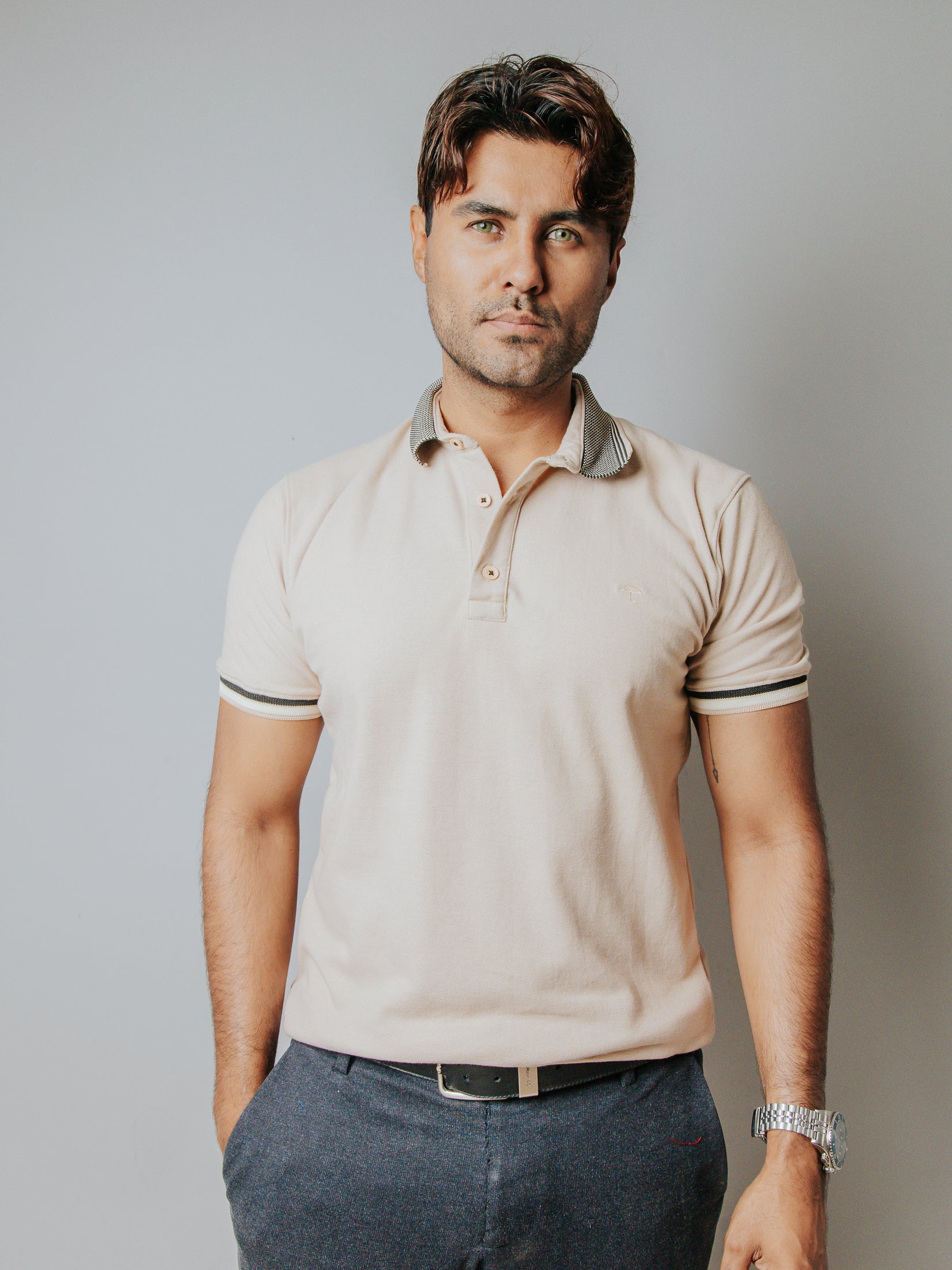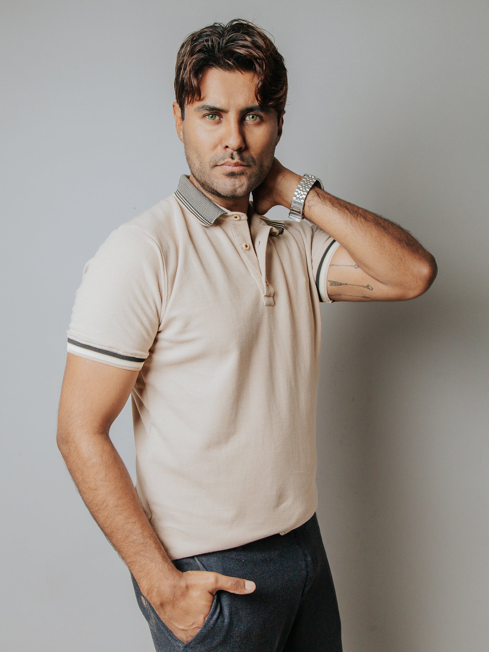 PLAYERA POLO SLIM FIT, BEIGE DETALLE NEGRO
