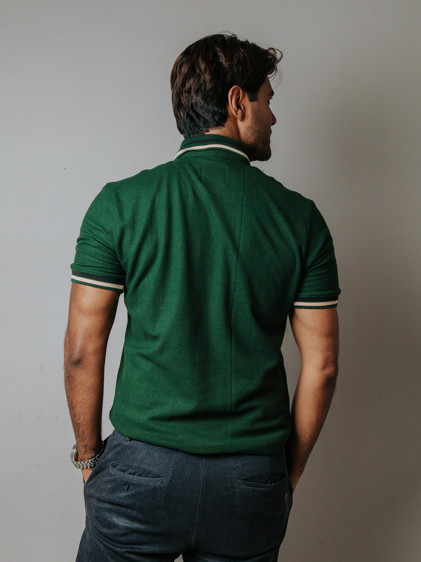 PLAYERA POLO SLIM FIT, VERDE DETALLE BEIGE Y NEGRO